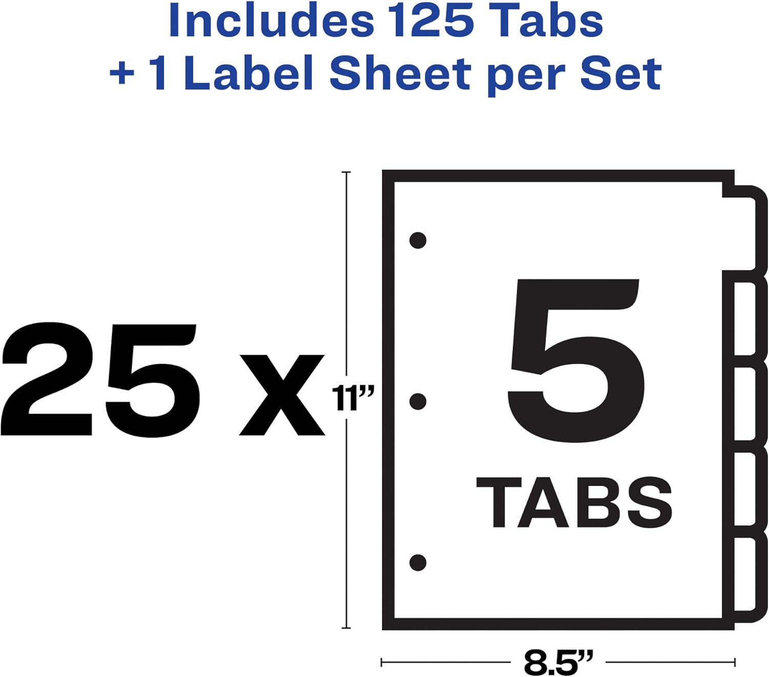 Avery 5 Tab Dividers for 3 Ring Binder, Easy Print & Apply Clear Label Strip, Index Maker Customizable White Tabs, 25 Sets (11446)