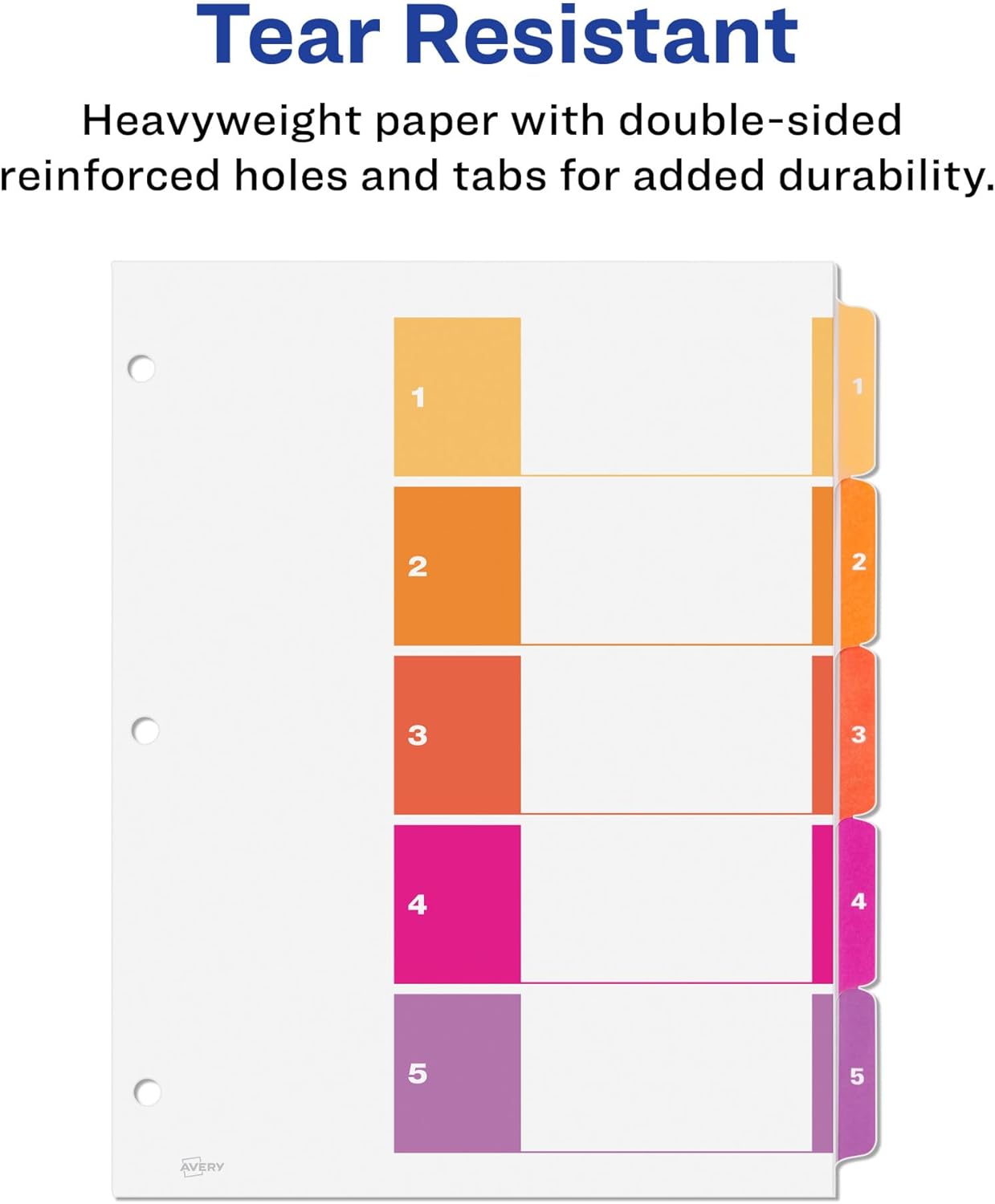 Avery 5 Tab Dividers for 3 Ring Binders, Customizable Table of Contents, Multicolor Tabs, 6 Sets (11187)
