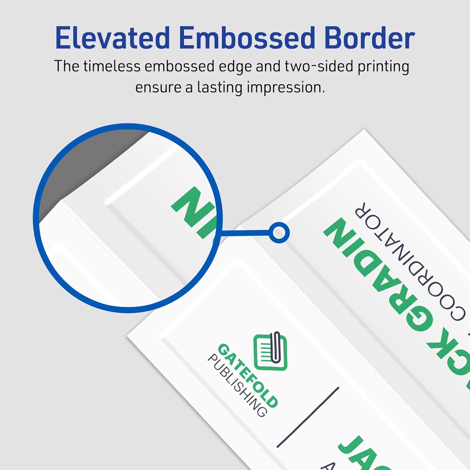 - Add an elegant touch to product displays, name cards, branding, food table cards, wedding place cards, and more with custom tent cards featuring a stylish embossed border