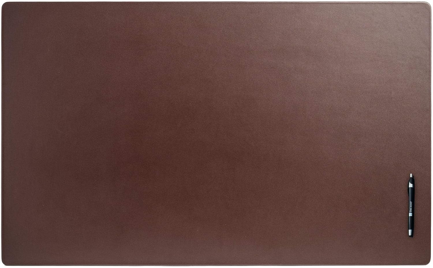 - LUXURY ADDITION TO THE OFFICE SETTINGS: Give your desk some personality with this great top-grain leather pad! Featuring a clean, open work space and luxurious writing surface, this chocolate brown leather desk pad enhances both form and function in your office. Built with a rigid internal core and gentle felt backing, this durable 38"x24" desk pad adds a buffer between your expensive furniture and the marks and scratches of daily use. The sleek, rail-less design is elegant and classic, and the rich chocolate brown color adds warmth to any office setting.