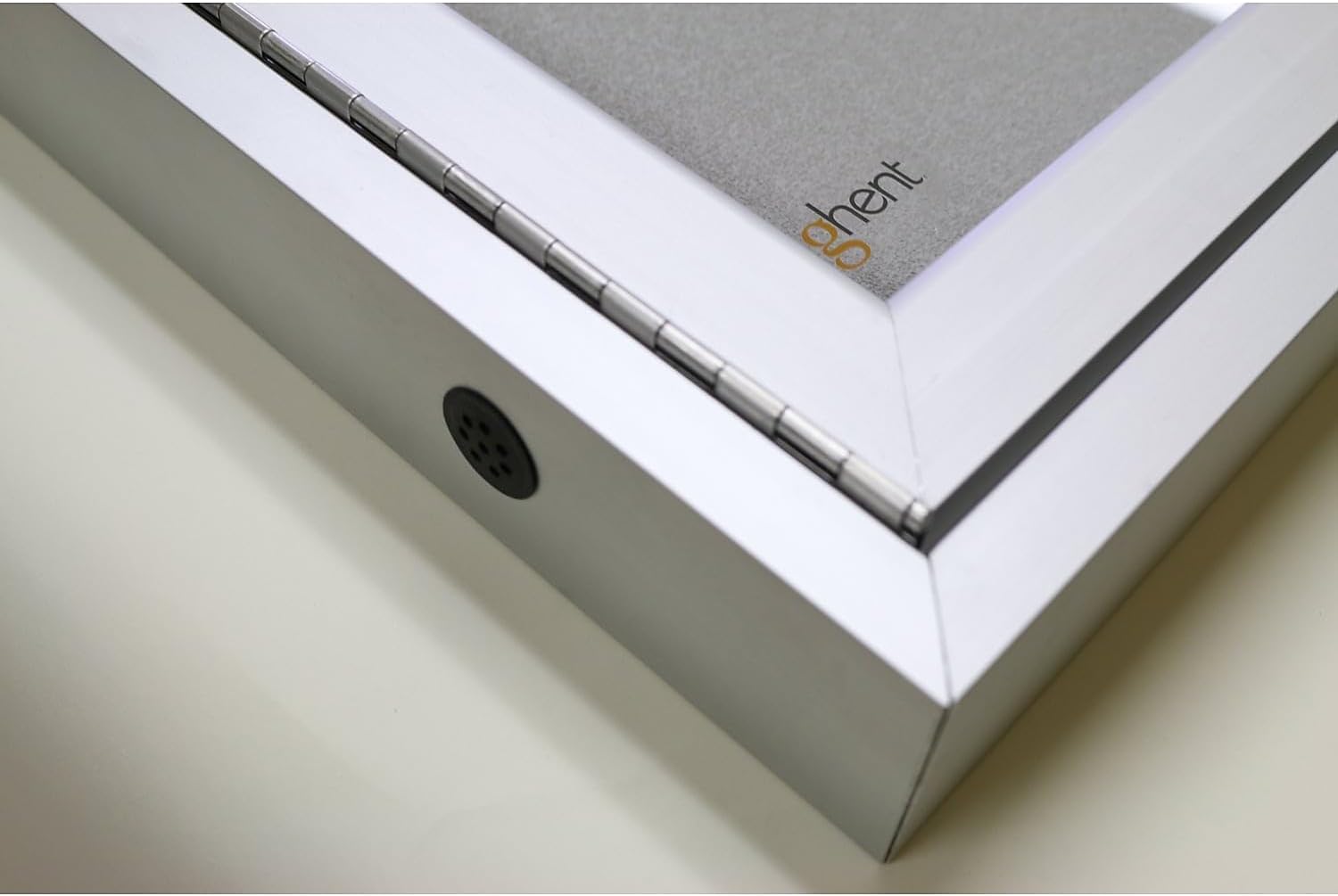 Ghent 24"x18" 1-Door Outdoor Enclosed Vinyl Bulletin Board, Shatter Resistant, with Lock, Satin Aluminum Frame - Silver (PA12418VX-193), Made in The USA