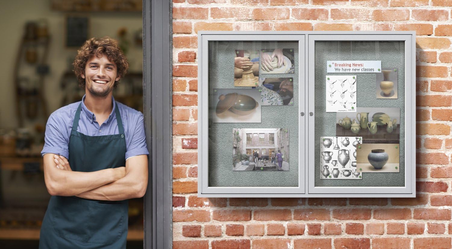 Ghent 36"x48" 2-Door Outdoor Enclosed Vinyl Bulletin Board, Shatter Resistant, with Lock, Satin Aluminum Frame - Ivory (PA23648VX-185 ), Made in the USA