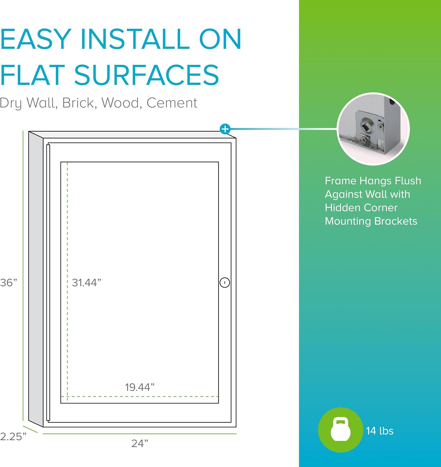 - Concealed corner brackets allow for Easy and secure mounting.