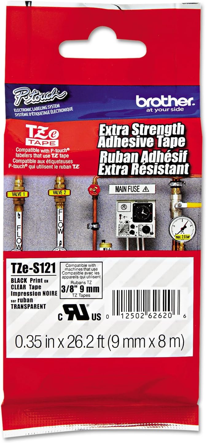 Brother Tape, Black on Clear Extra Strength, 9mm (TZeS121)