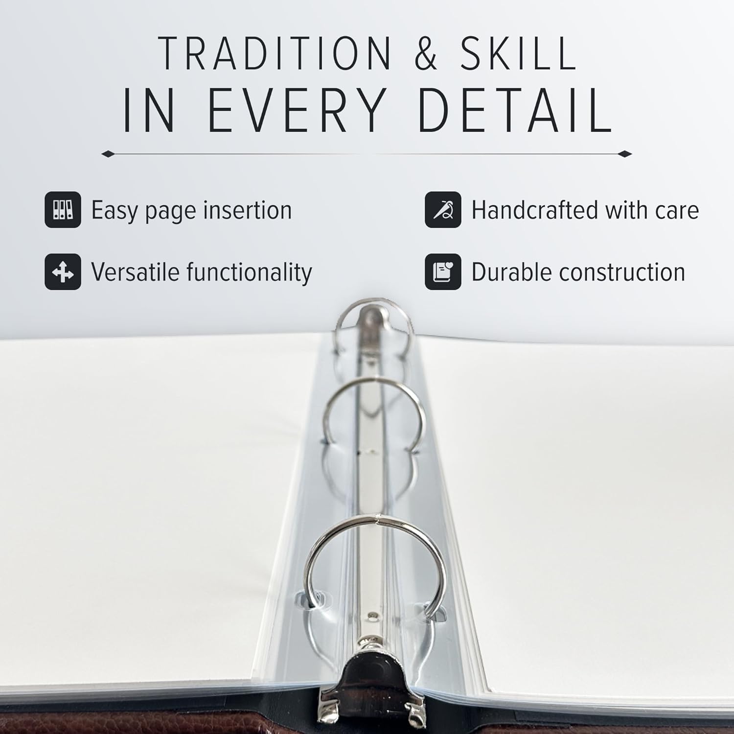 - 📗 𝗟𝗲𝗮𝘁𝗵𝗲𝗿 𝗕𝗶𝗻𝗱𝗲𝗿: Packed with professionalism and durability, our Gallery Leather binder features a bonded leather construction, complete with protector sheets and a hubbed spine. Choose from a range of colors and texture options to suit your style. Ideal for business professionals, military personnel, and enthusiasts alike