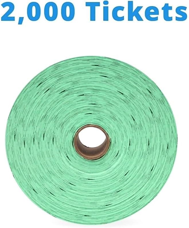 INDIANA TICKET CO. 2,000 Green Raffle Tickets Double Roll, Premium Quality 50/50 Raffle Tickets, Tickets for Events, Carnivals, Door Prizes, Drinks and More
