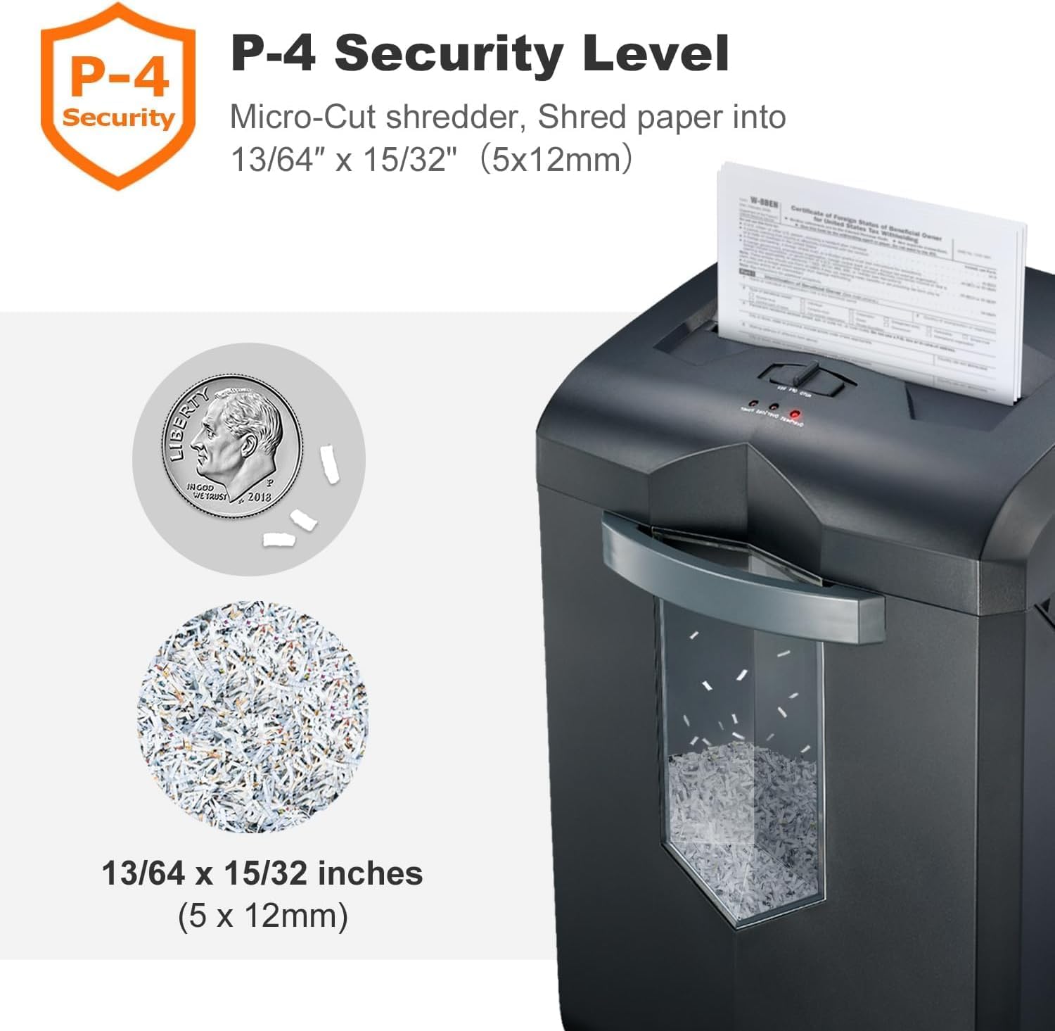 - 16-Sheet Shredding Capacity: The micro-cut shredder up to 16 sheets(Letter Size, 20lb) at a single pass, shreds paper into tiny particles measuring 13/64 x 25/64 inches (5 x 12mm); shreds credit cards and staples as well.
