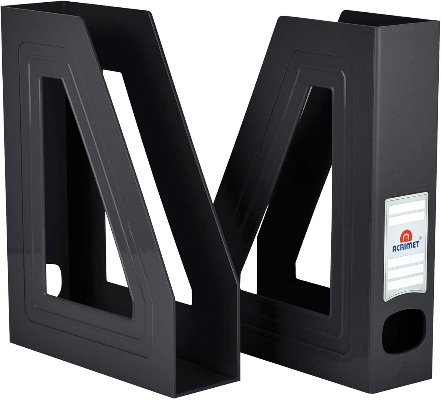 Acrimet Magazine File Holder, Durable Rack, Space-Saving Organizer (Plastic) (Black Color) (2 pack)