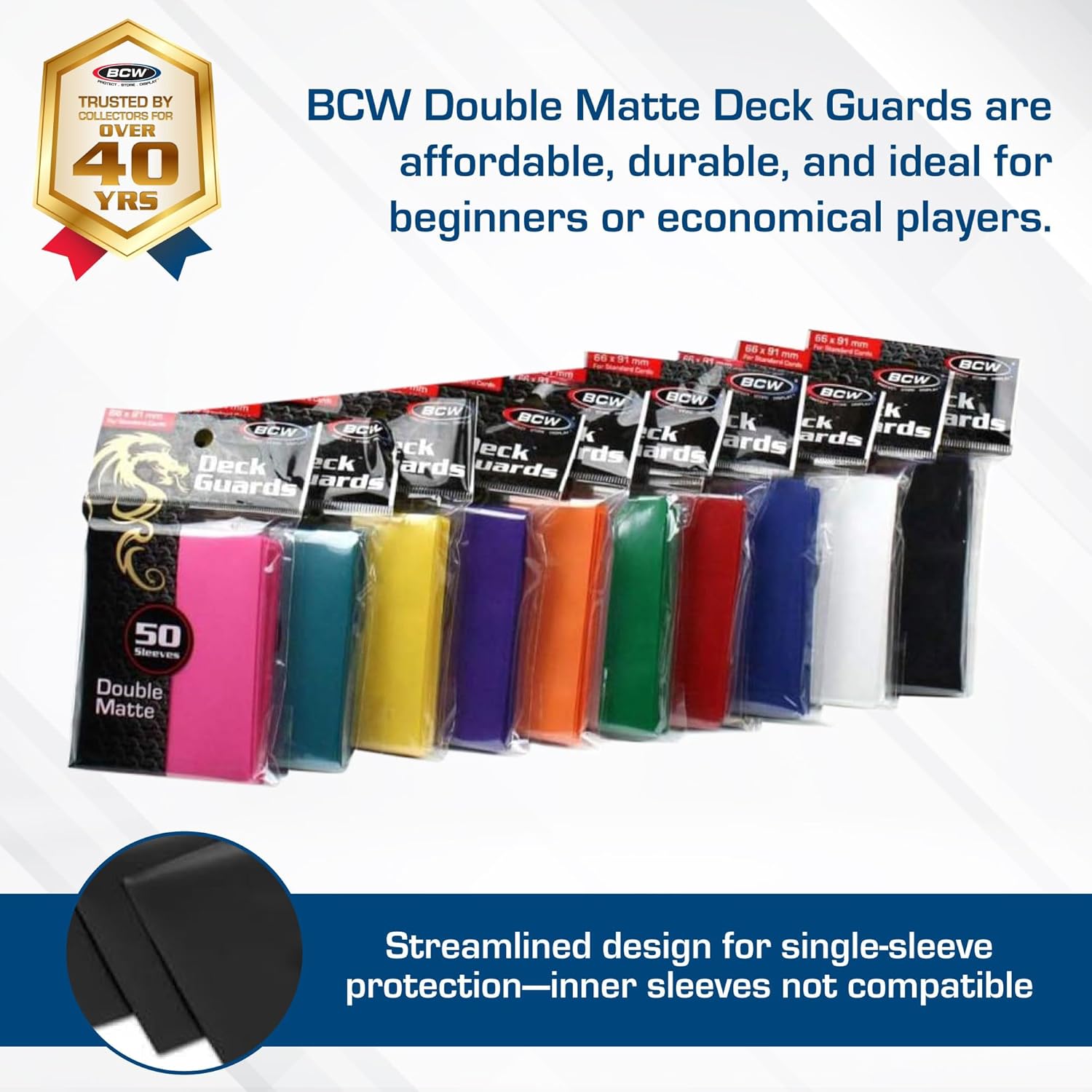 BCW Deck Guard - Double Matte Card Sleeves | 500 Count Box (10 Packs of 50 Sleeves) |Acid-Free, No PVC | Fits 2.5" x 3.5" Game Cards | Archival Safe Sleeves for Card Protection (Blue)