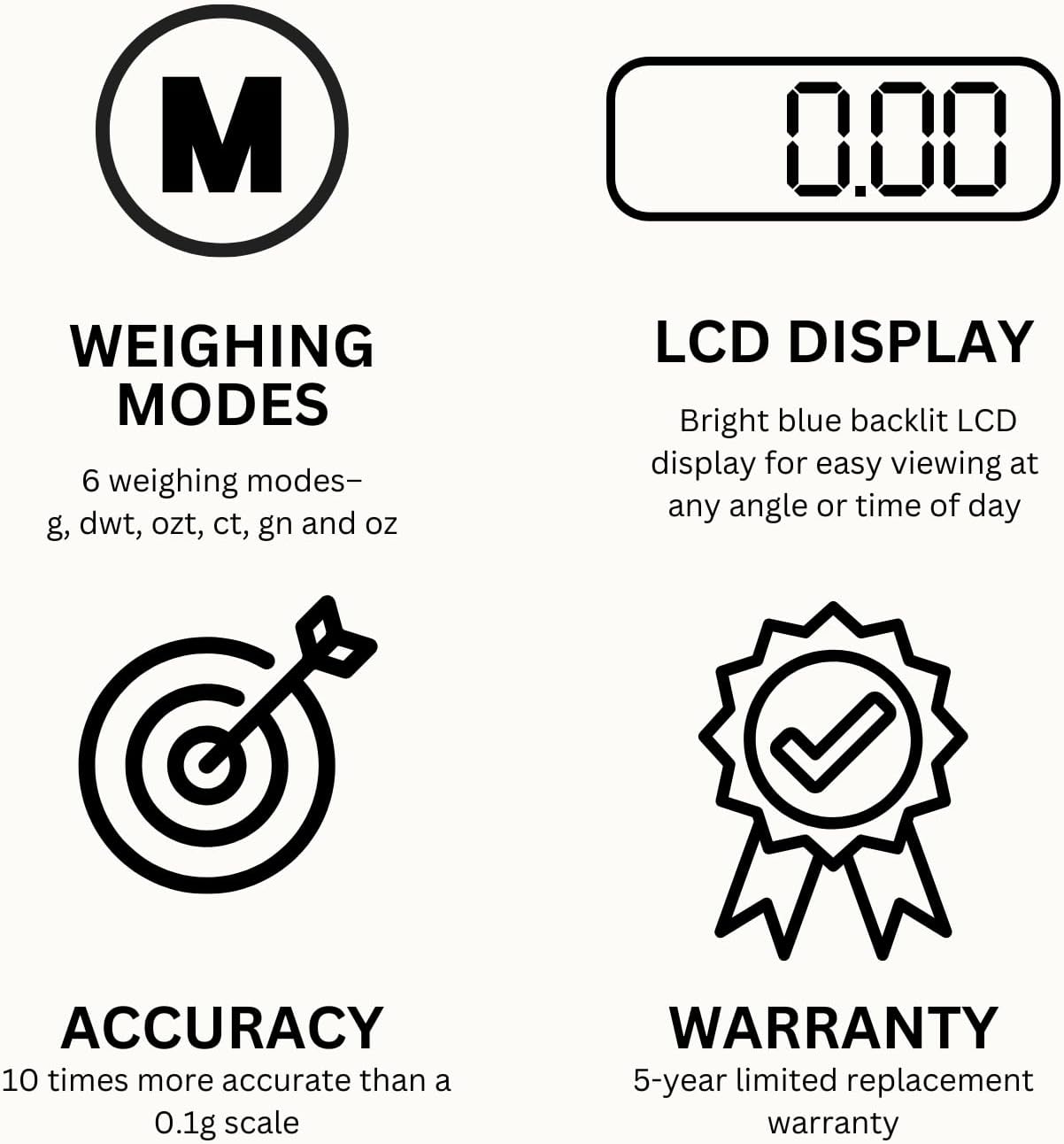 - AUTO SHUT-OFF: To preserve battery life, the scale is equipped with an auto-shut-off feature. If left idle for a specific period, it will automatically power off, saving energy and extending the battery's lifespan. The GemOro Platinum Scale also provides push-button digital calibration to maintain accuracy over time. Calibration ensures consistent and reliable measurements, maintaining the scale's performance. This product comes with a 5-year limited replacement warranty.