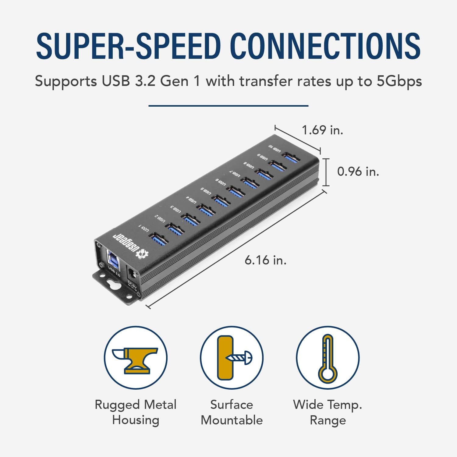 - [ Easy Mounting ] : Integrated metal mounting flanges allow you to surface or wall mount the hub where you need it. Mount for your Industrial, Medical, Education, Business, Laboratory, and Gaming installs.