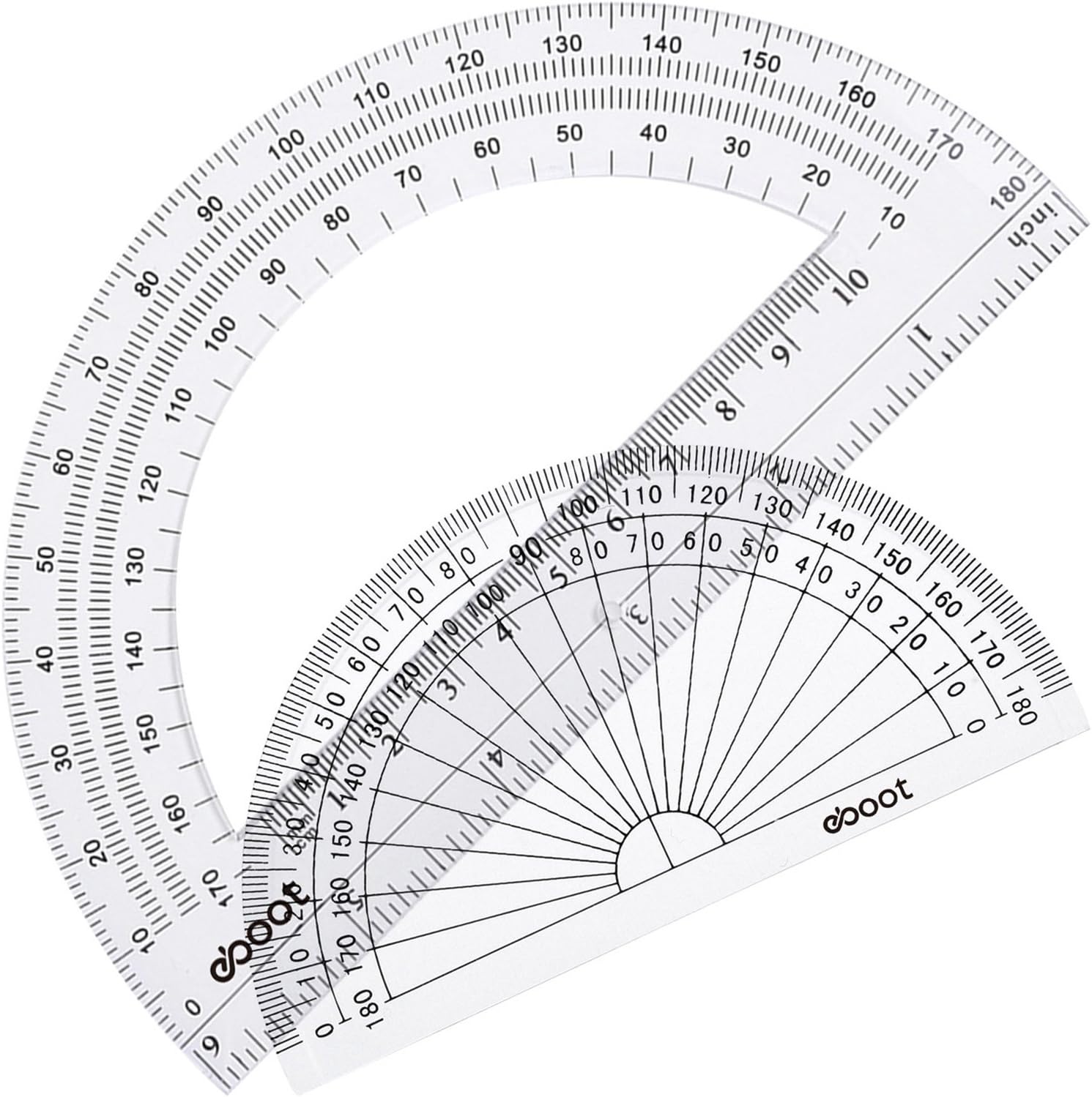 EBOOT 2 Pcs Plastic Protractor Clear 180 Degrees Transparent Protractor for Geometry, 4 Inch and 6 Inch