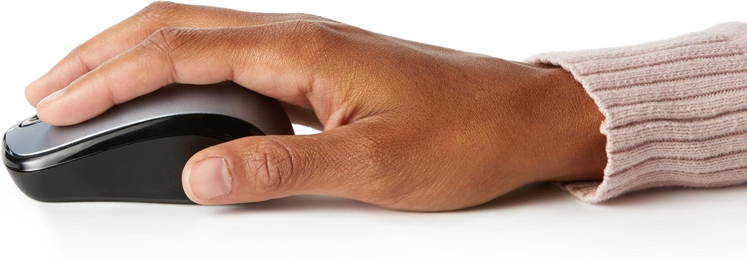 Amazon Basics 2.4 Ghz Wireless Optical Computer Mouse with USB Nano Receiver, Silver