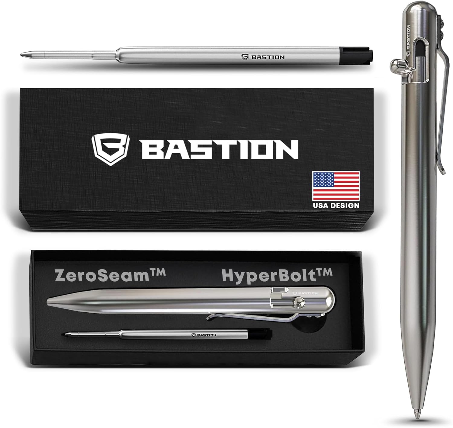 - Bolt Action Mechanism: With premium machined CNC precision design, BASTION pens bring together functionality and elegance. Our bolt-action technology offers a secure lock with no wearing components, as well as a smooth one-push operation. A sturdy body, effortless retractable system, and luxurious look make our pens a status symbol.