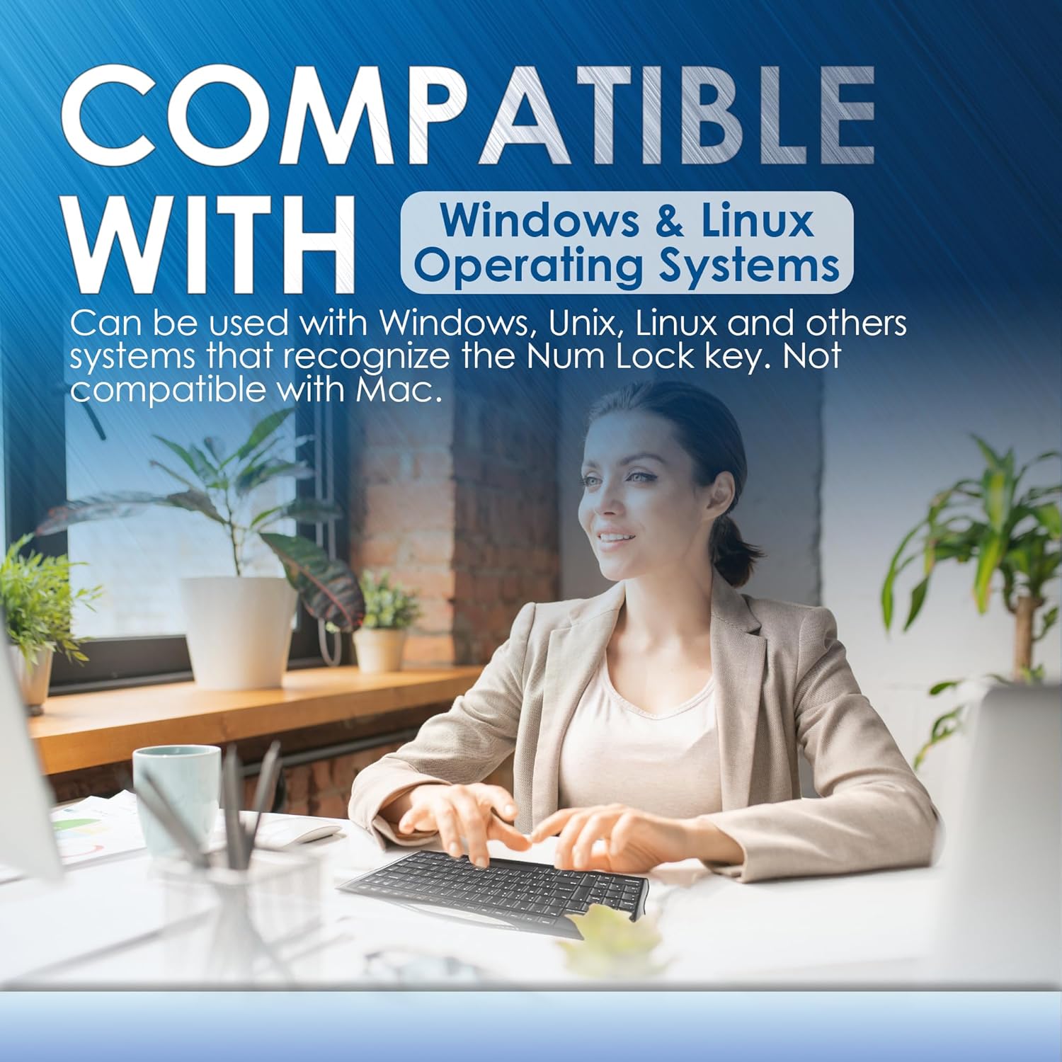 - WIDE COMPATIBILITY – PLUG & PLAY – This USB keyboard works seamlessly with Windows, Unix, and Linux systems that support Num Lock. Not compatible with Mac. No drivers required—just plug in and start typing!