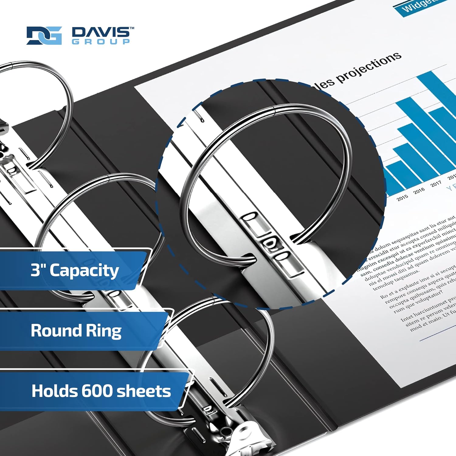 - ROUND-RING BINDERS: These big binders feature round rings and come in 1-inch, 1.5-inch, 2-inch, and 3-inch sizes. The 1-inch binder holds 200 sheets of paper, the 1.5-inch binder holds 275 sheets of paper, the 2-inch binder holds 400 sheets of paper, and the 3-inch binder holds 600 sheets of paper.