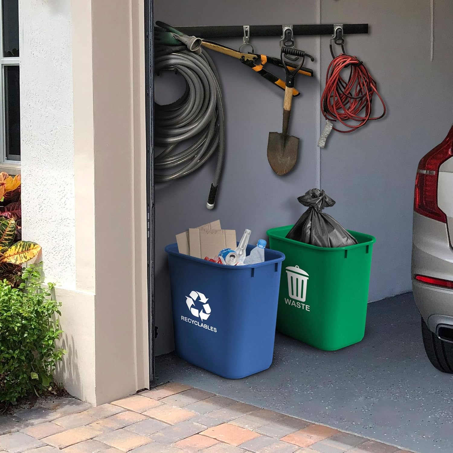 - Recommended Uses For Product : For to separate recycled waste from regular waste in the garage, under counters or inside cabinets