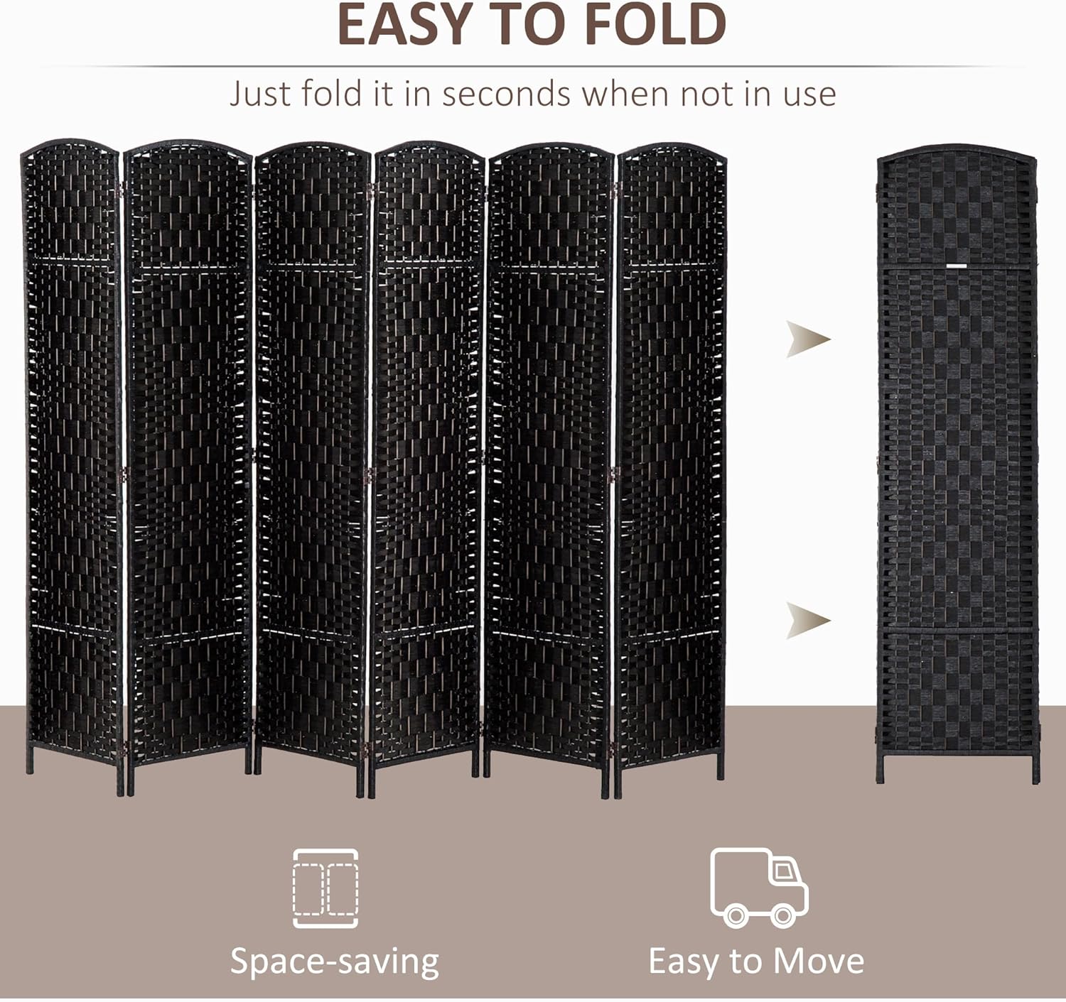 - Artistic Room Divider: Designed with six elegant wicker woven panels and a beautiful arched top, this panel room partition is both practical and fashionable, making a stylish room statement that will complement most room decor