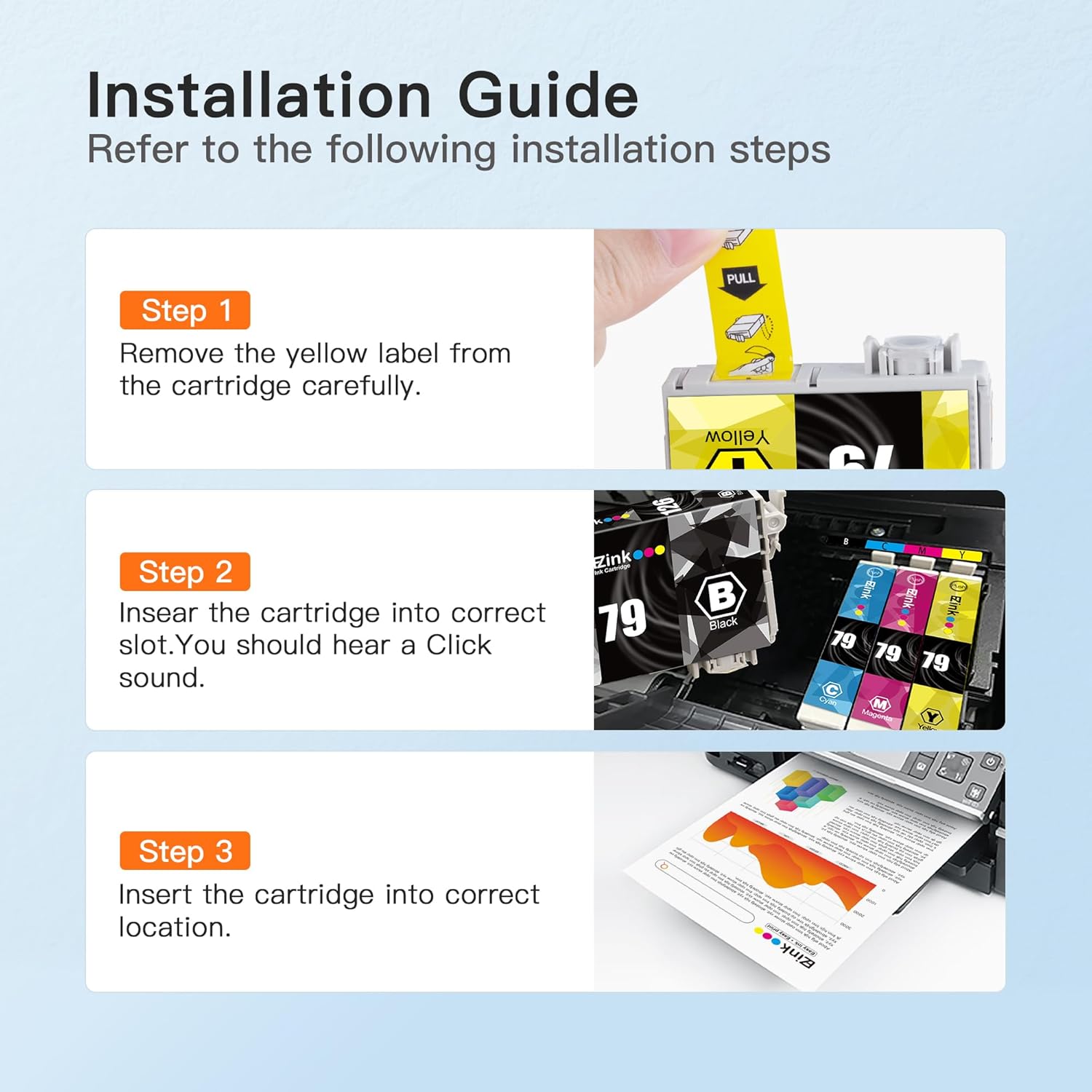 - Package Contents: 1 x User Guide, 2 x Black 79, 1 x Cyan 79, 1 x Magenta 79, 1 x Yellow 79, 1 x Light Cyan 79, 1 x Light Magenta 79 (Total 7 Pack) T079120 T079220 T079320 T079420 T079520 T079620