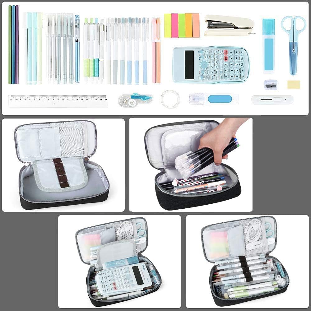 - 【PREMIUM MATERIAL & METICULOUS CRAFT】: High quality Oxford fabric makes the pencil case more stretchy and reversible, scratch resistant and dirt resistant, easy to clean. Fine workmanship, decent appearance, smoothly closed by two strong zippers.