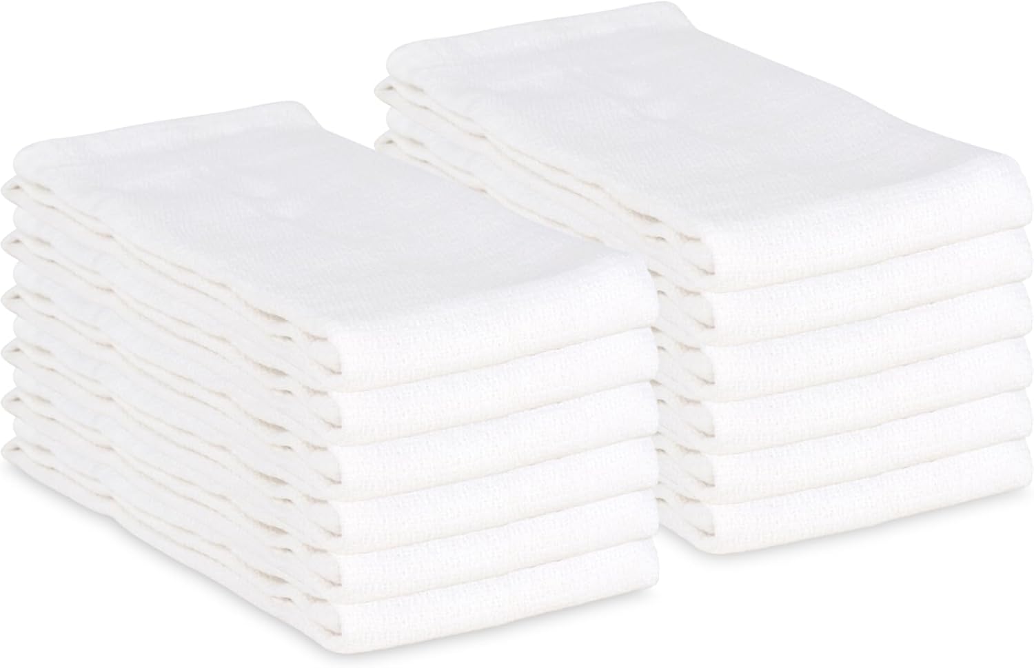 - OVERSIZED HUCK TOWEL BULK PACK: Our 12 pack of huck towel cleaning cloths measure 16" x 26" (10" bigger than standard microfiber cleaning cloths). Our vibrant huck towels are available in several colors. Blue, Green, Orange, Pink, Yellow, and White. Professionals use color-coding, for instance, clean bathrooms with one color cloth, and dining rooms with another color.