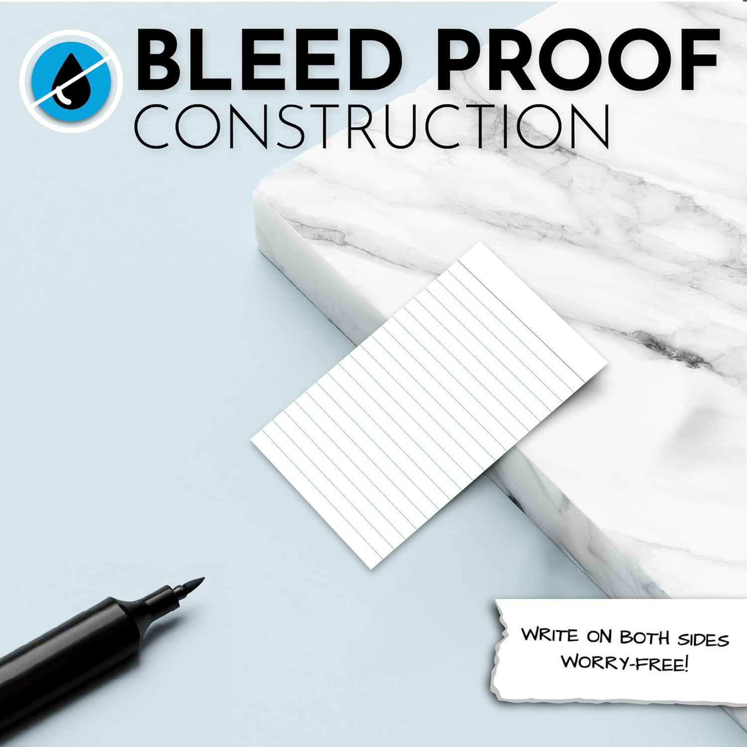 - DETAILS: (50 pack) 3” x 5” double sided, blue lined note cards with header portion at top of card. Lines printed on thick 14PT heavy duty un-coated white card stock paper for writability.