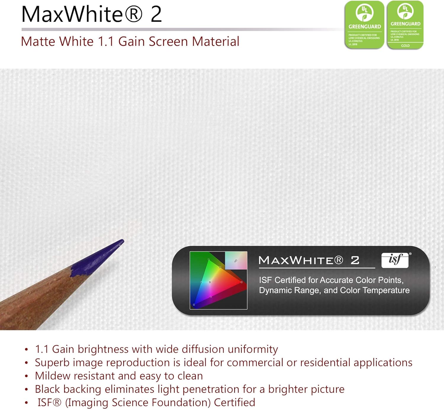 - [MaxWhite Screen Material for Brilliant Images] – Features multi-layer woven MaxWhite material with 1.1 gain for vivid brightness, rich colors, and a 180° wide viewing angle so everyone enjoys a clear picture. The fully black-backed design blocks light penetration, enhancing contrast and image quality.