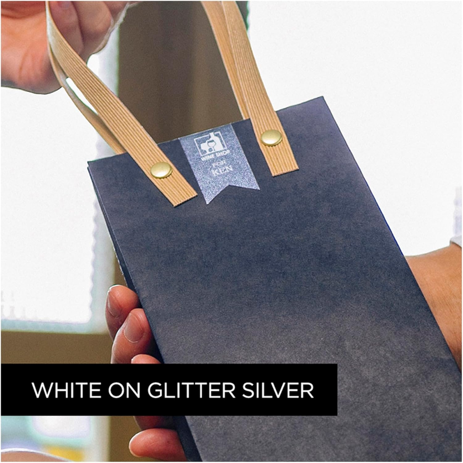 - CHOOSE FROM PREMIUM GLITTER TAPES: TZe Premium Glitter tapes available in Gold Print on Glitter White tape, Black Print on Glitter Gold tape and White Print on Glitter Silver tape in ½” or 1” widths.