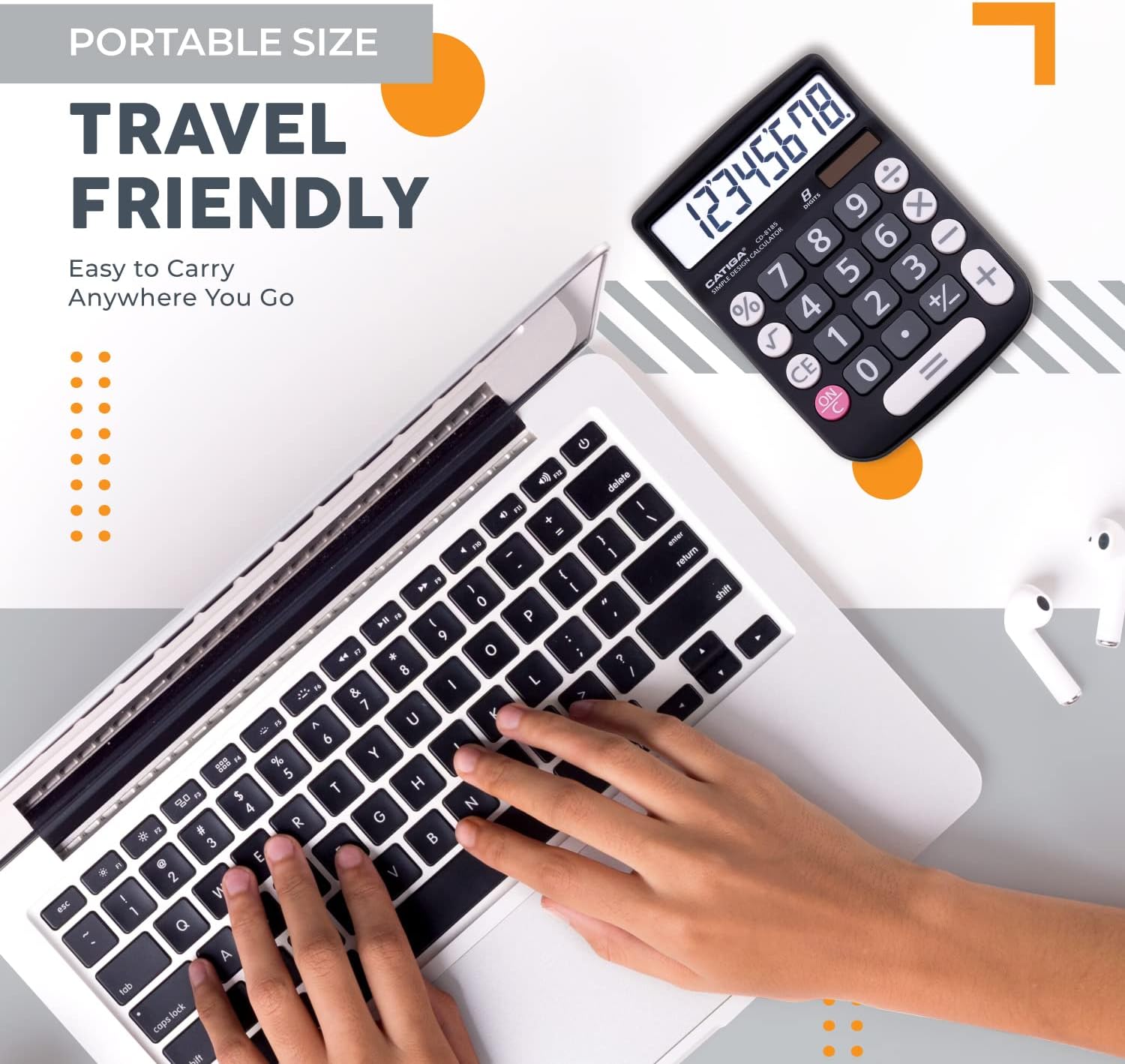 CATIGA Desktop Calculator 8 Digit with Solar Power and Easy to Read LCD Display, Big Buttons, for Home, Office, School, Class and Business, 4 Function Small Basic Calculators for Desk, CD-8185 Black
