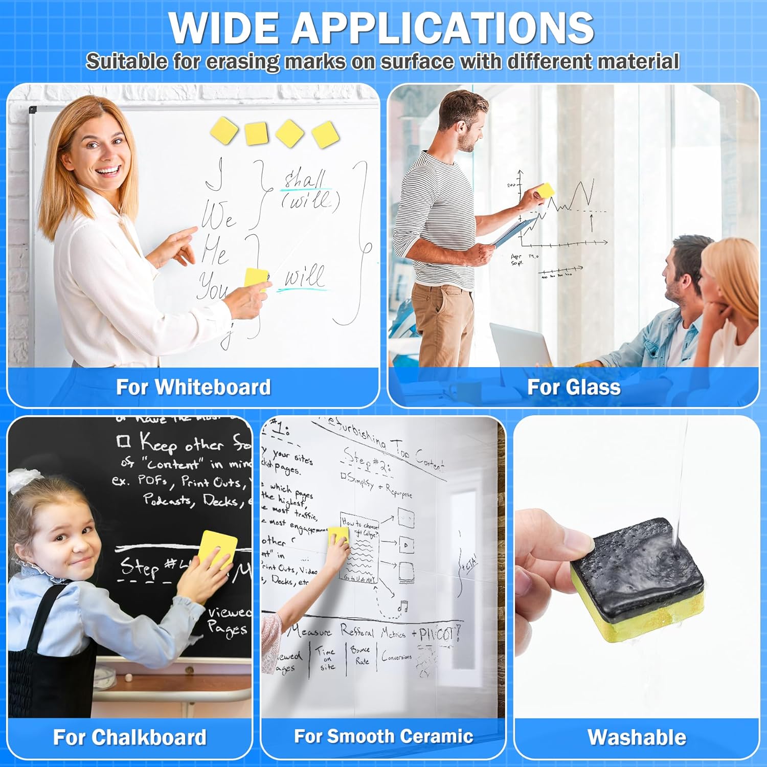- DURABLE AND WASHABLE: Our dry erasers are made of premium quality EVA foam and high-density felt bottom, non-toxic, and easy to clean the erase markers on glass or white board. And the felt side of the eraser is magnetic and can be absorbed to the whiteboard. The erasers are hand-washable with water and soap for reuse