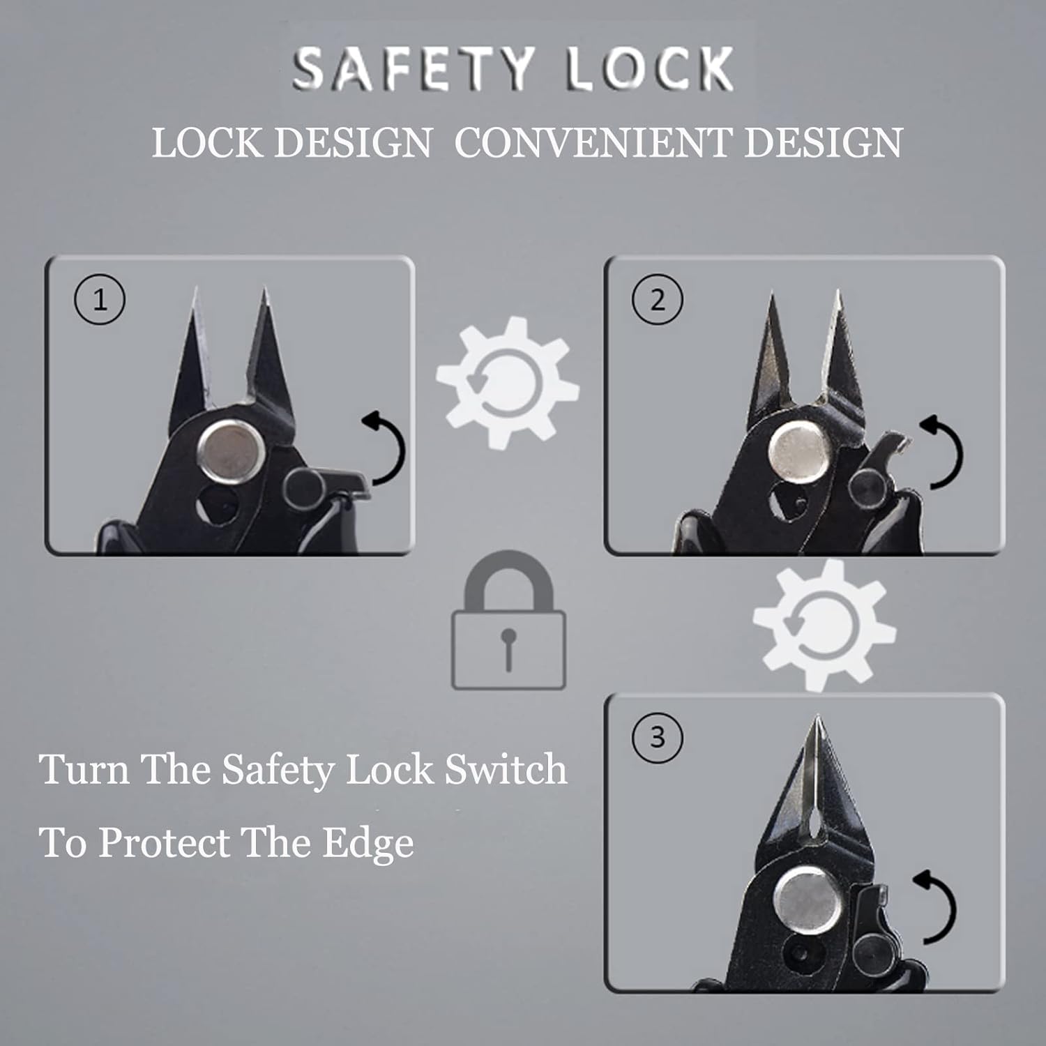 - 3.5 INCH WIRE CUTTER: Made of high-quality chrome vanadium steel to improve durability.Bent handle design,non-slip safety,smart lock design,light weight,thin profile, easy operation, make the grip operation feel comfortable, easy to use.