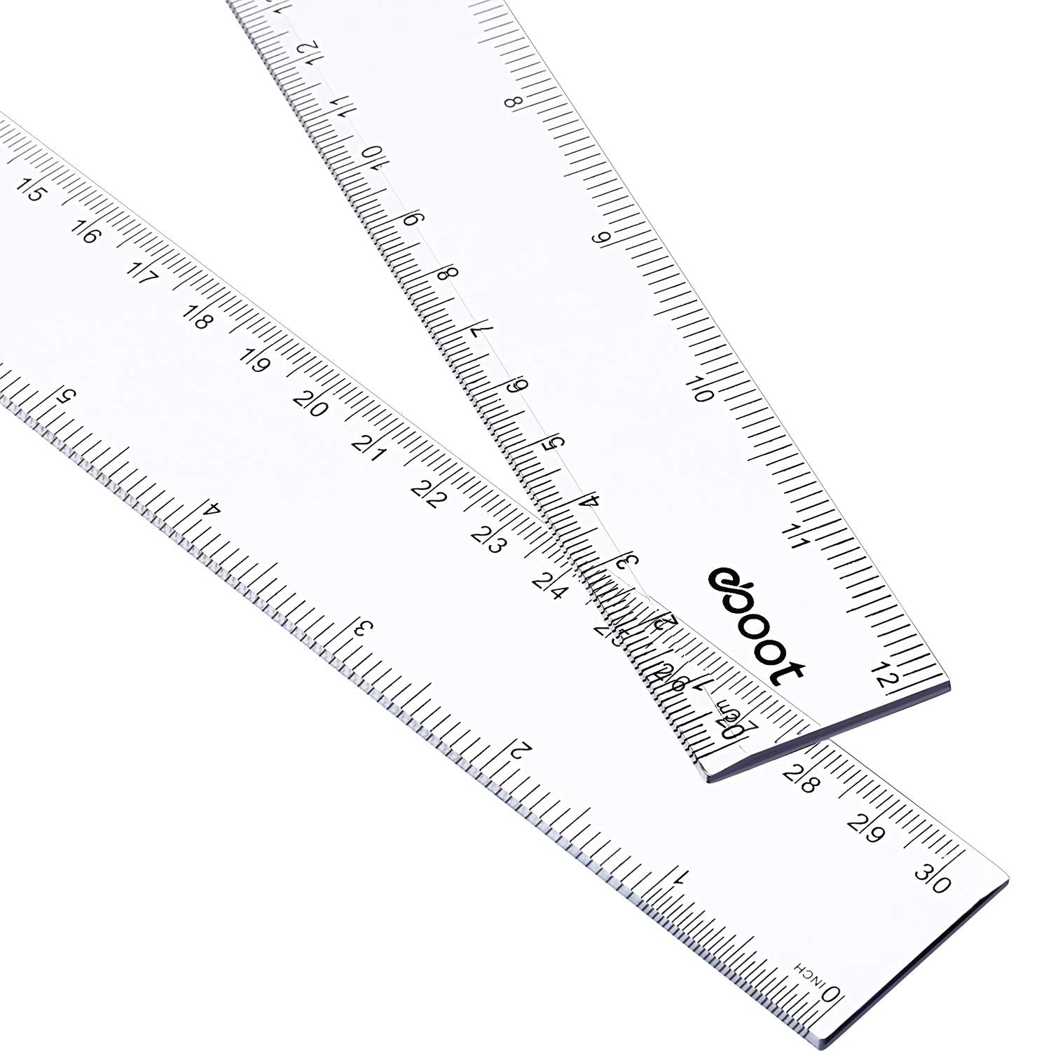 EBOOT 2 Pack Plastic Ruler Straight Ruler Plastic Measuring Tool for Student School Office (Clear, 12 Inch)