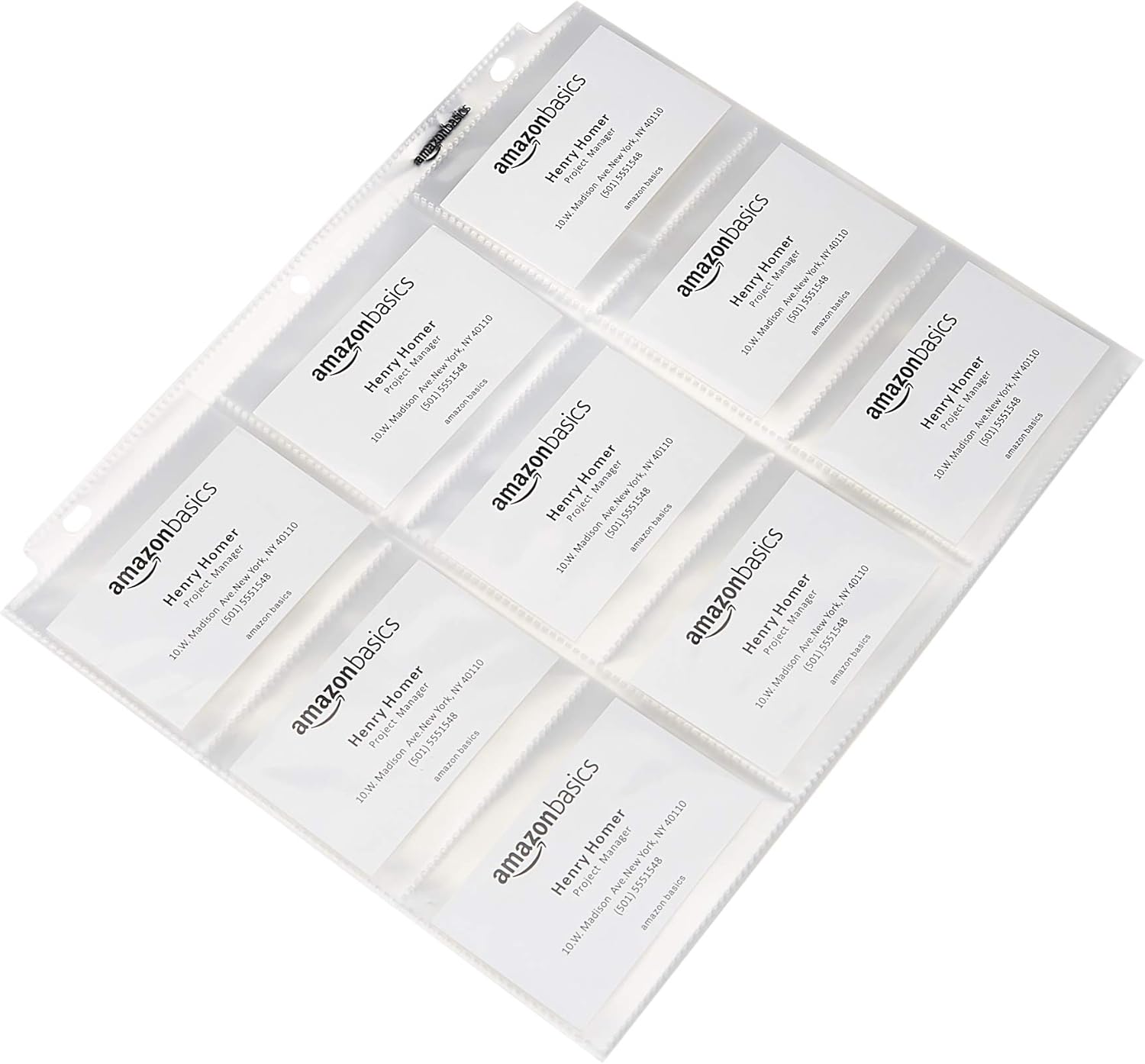 Amazon Basics 9-Sleeve Trading Card Protectors Binder Sheet, Transparent, 100 Pack