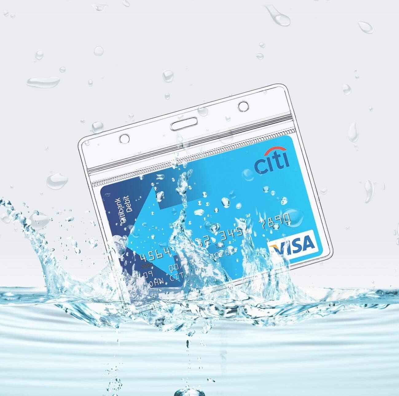 - Durable & Waterproof clip on badge holder: Large badge holder with clip with waterproof seal on the top provides perfect protection for your ID cards and badges. Clips made of stainless steel with poly straps. The rust resistant material clips have good strength that hold well to clothing, they did not rust or show any sign of problems.