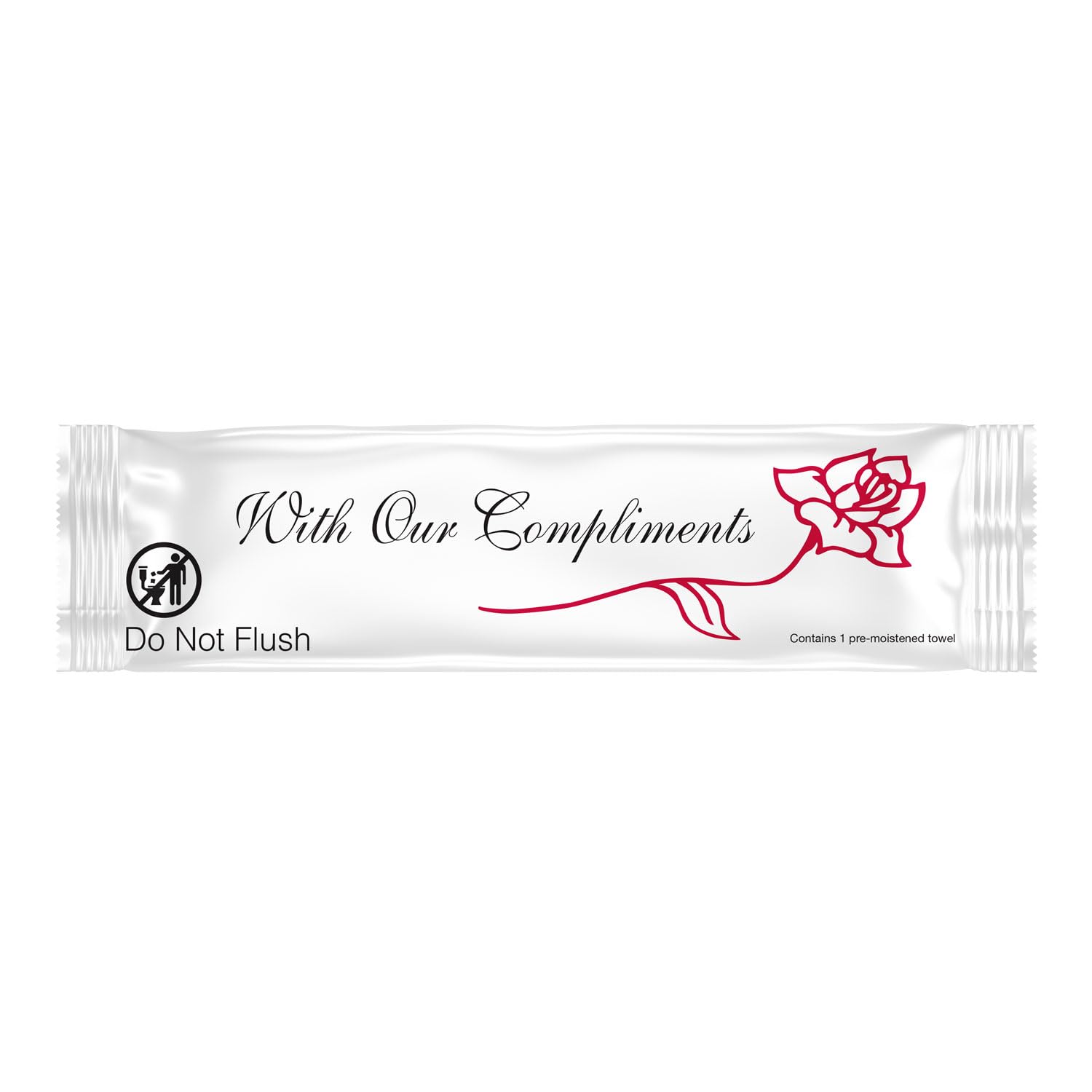 Diamond Wipes Pre-moistened Hand Wipes - “With Our Compliments” Logo 10x8” Extra Thick Lemon-Scented Pack of 1000 Individually Wrapped Wet Wipes