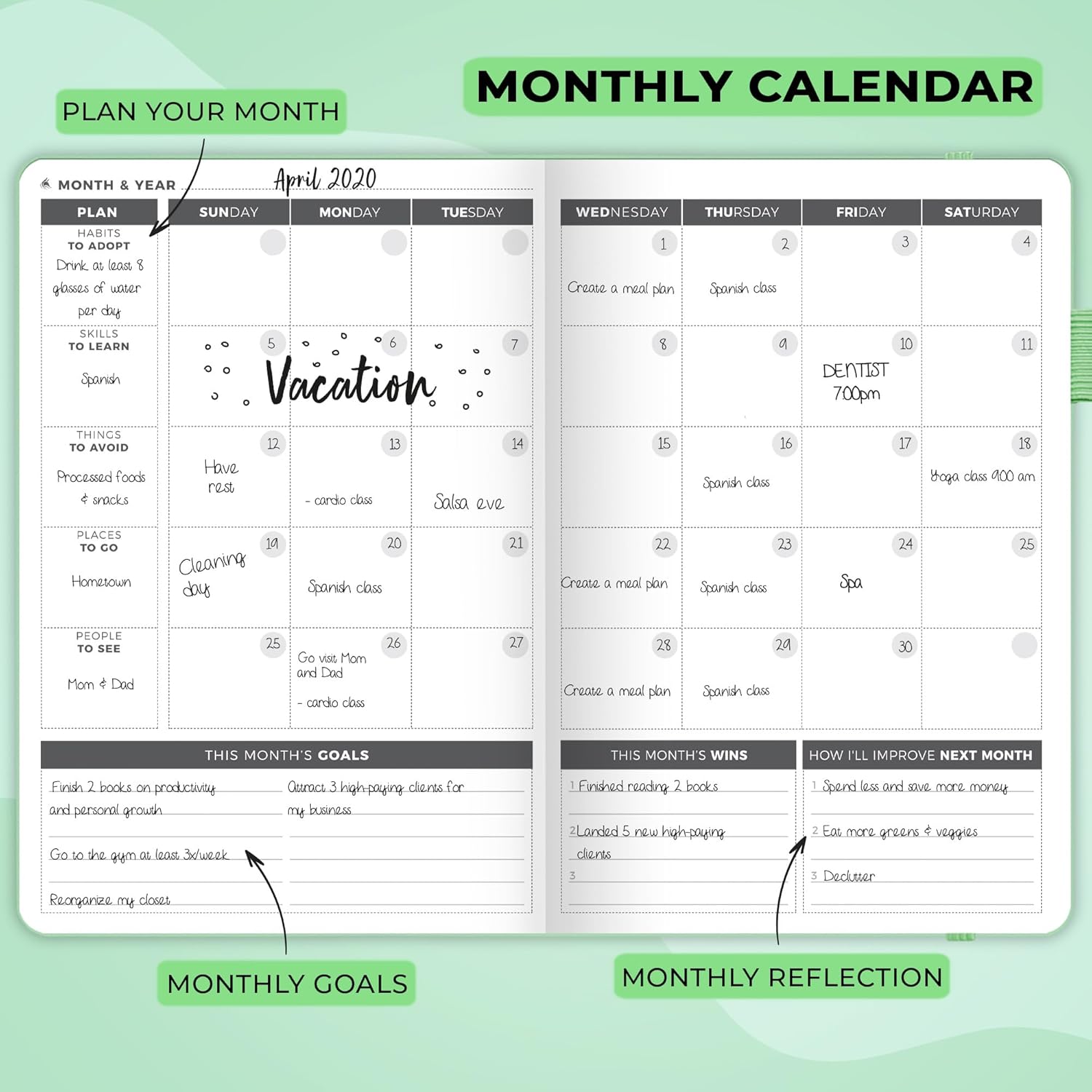 Clever Fox Planner – Undated Weekly & Monthly Planner for Productivity, Time Management & Goals – Organizer Journal – A5 (Mint Green)