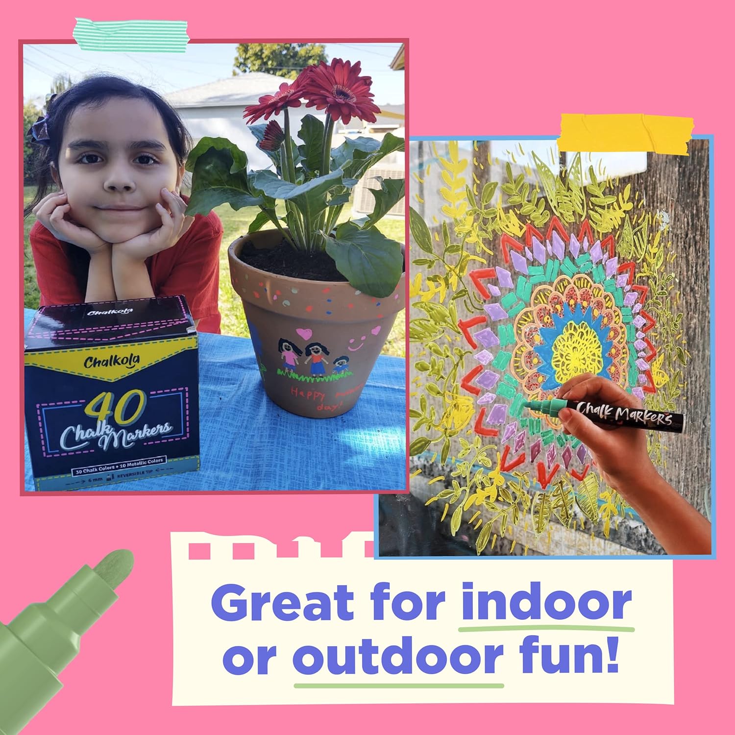 - 40 Colors - One pack containing all our colored Neon, Earthy & Metallic Chalk Pen. Use these chalkboard markers to decorate any Non-Porous surface including mirrors, shop storefront, metal, whiteboard.
