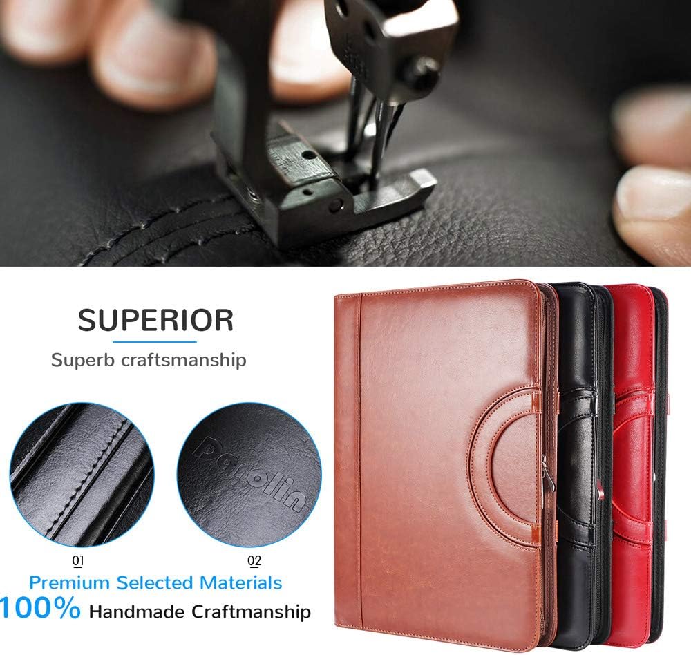 Darolin Zippered Leather Padfolio Portfolio with Hidden Handle and Clipboard, Business Conference Organizer Notepad Folder, Portfolio Bag, Padfolio for Women/Men (Black)