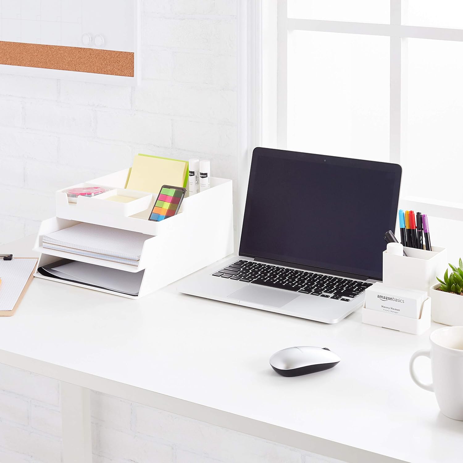 - Coordinates with other desk accessories in the Amazon Basics Plastic Organizer collection