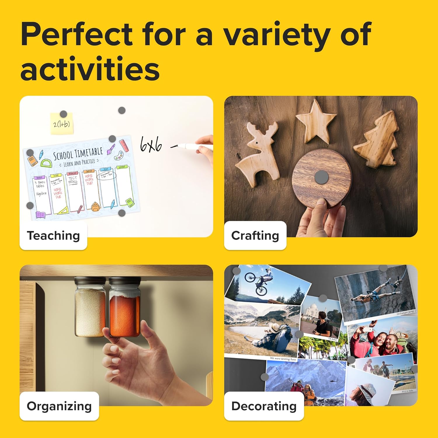 - 𝐏𝐑𝐄𝐌𝐈𝐔𝐌 𝐐𝐔𝐀𝐋𝐈𝐓𝐘 - ferrite magnets with durable adhesive backing! Large square/round magnets ready to be used for all your needs.