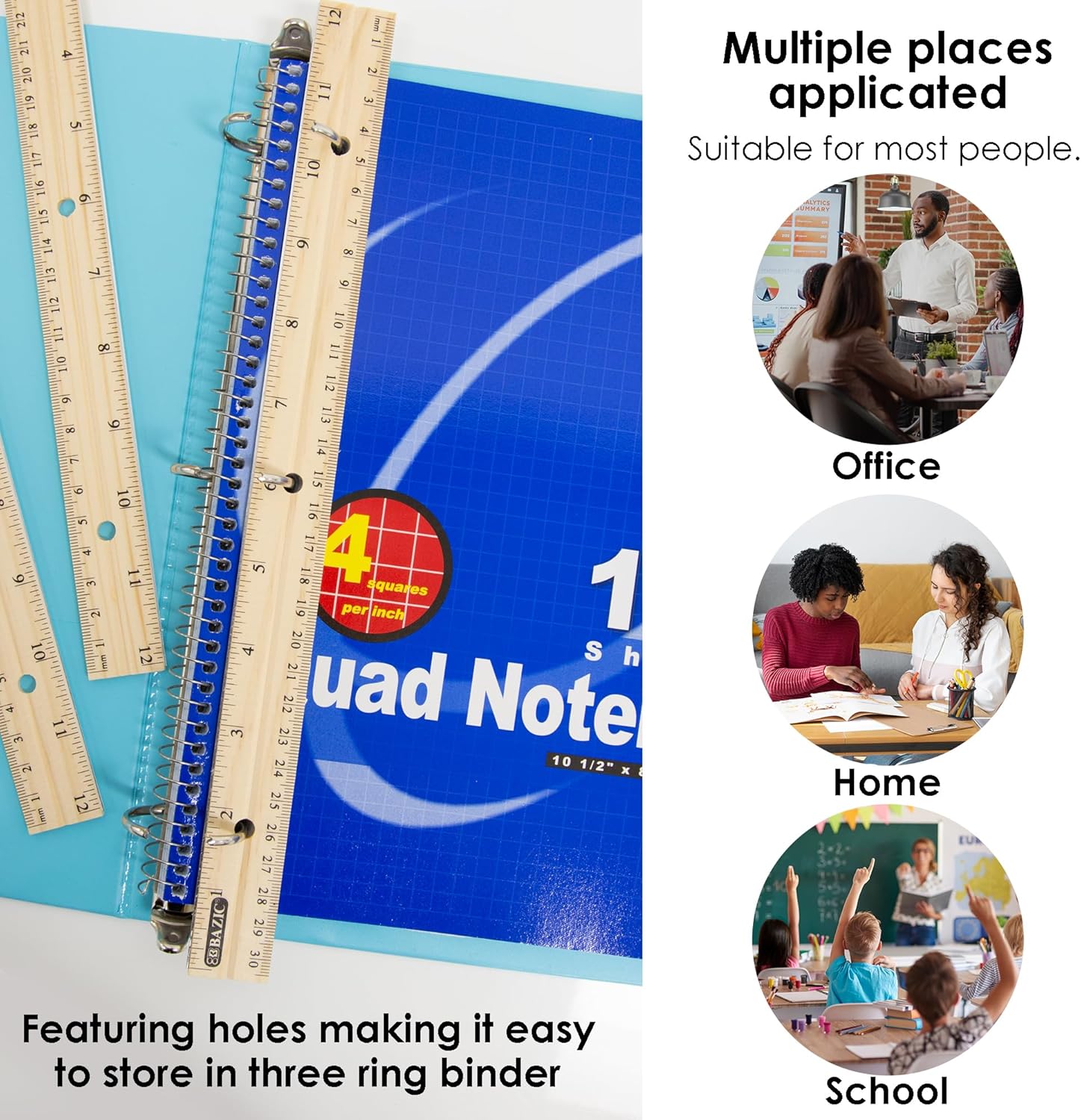 - ⭐ DOUBLE-SIDED MEASUREMENT. Let measuring be the least of your worries with our 12inch/30cm natural wood ruler containing a single metal edge and featuring holes making it easy to store in three-ring binder!