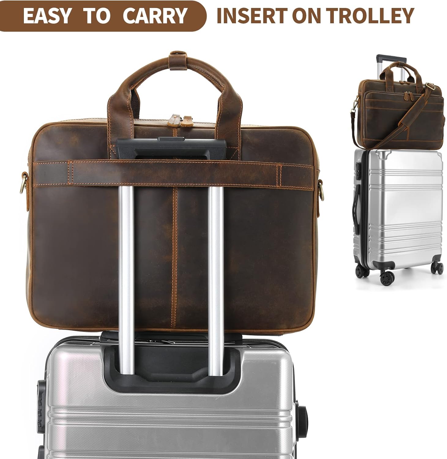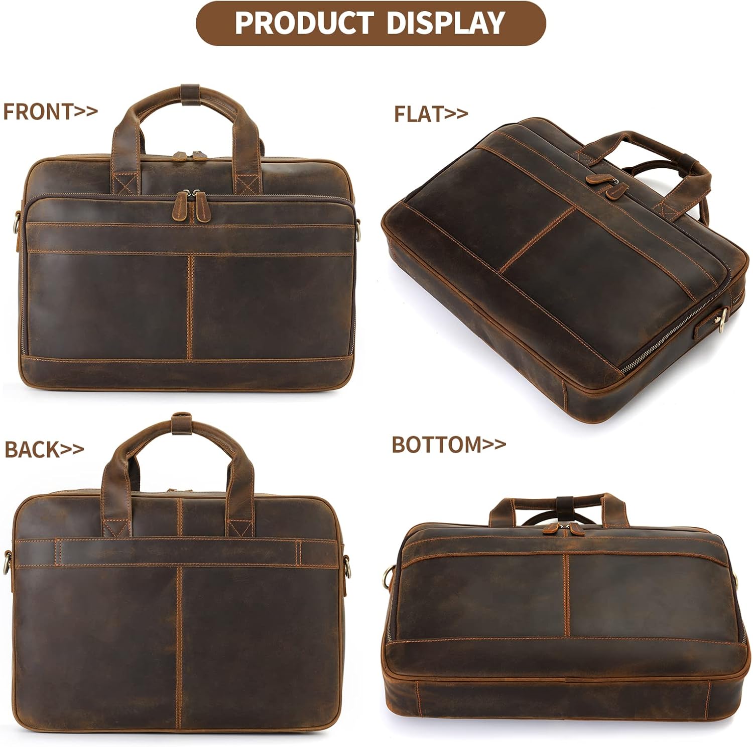 - Material: High quality Cowhide Grain leather mens briefcase. Handmade leather briefcases for men using traditional techniques. Sturdy top handle men's briefcase, adjustable nice shoulder straps (appr. 85 ~ 140 cm).
