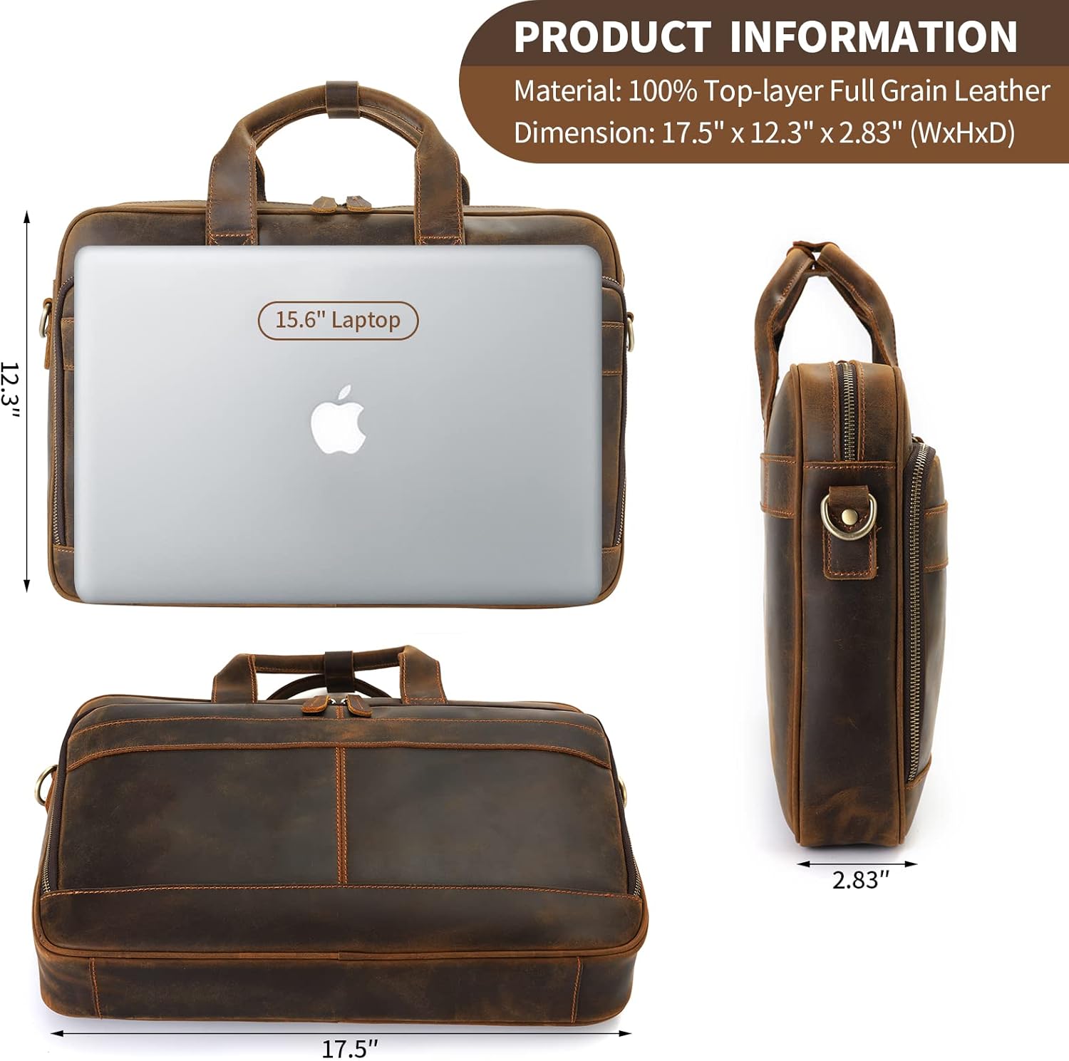 - New Arrival leather briefcase! Dimension: 17.5*12.3*2.83 inches (44.5*32*7.2cm), This briefcase for men fits up for 15.6" laptop.