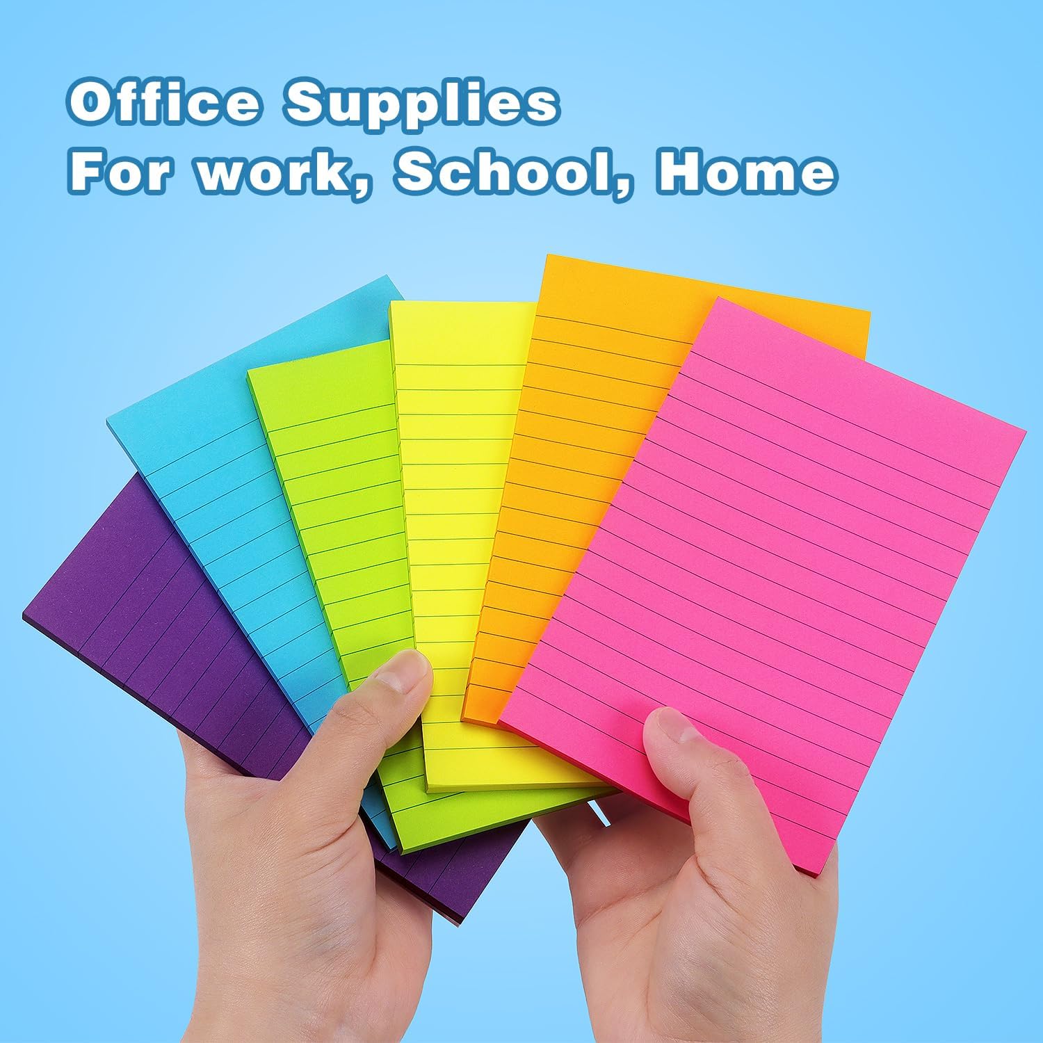 Early Buy Lined Sticky Notes with Lines 4x6 Self-Stick Notes 6 Bright Color 6 Pads, 45 Sheets/Pad
