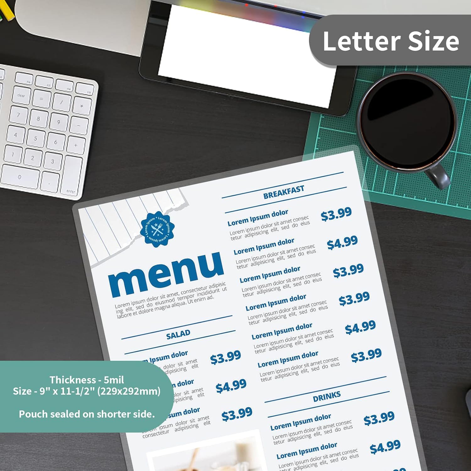 - 📄LETTER SIZE: Laminating Sheet Paper is 5 mil thickness, 9 x 11.5 inches, about 229 x 292mm. Fits letter size documents up to 8.5 x 11 inches. The thermal laminating pouches sealed on shorter side.