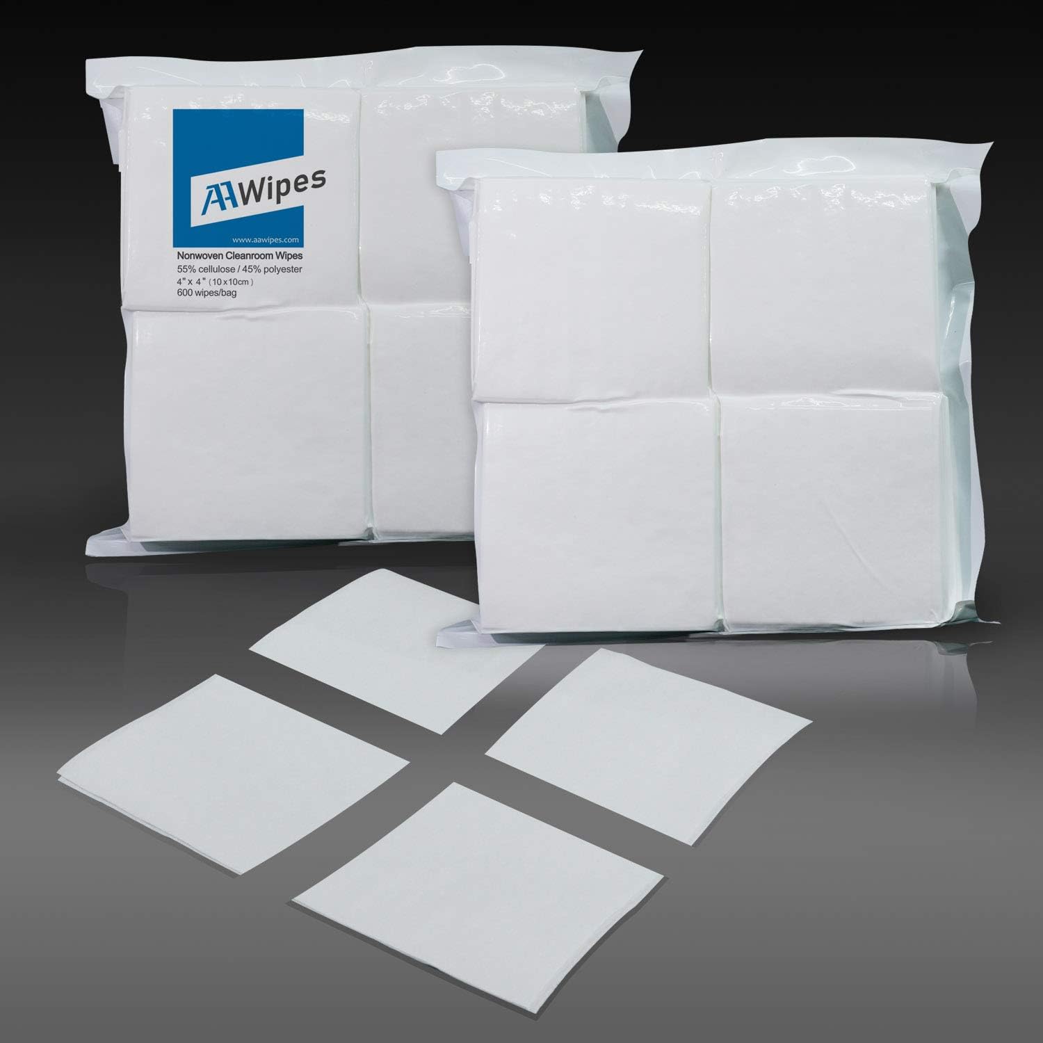 AAwipes Cleanroom Wipes Lint Free Wipes 4" x 4" Cellulose/Polyester Blend (4" x 4"-600 Pcs) Nonwoven Wipers (NW06804)