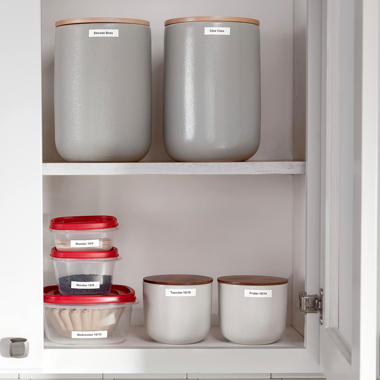 - Plastic labels that adhere easily to most common surfaces such as paper and glass