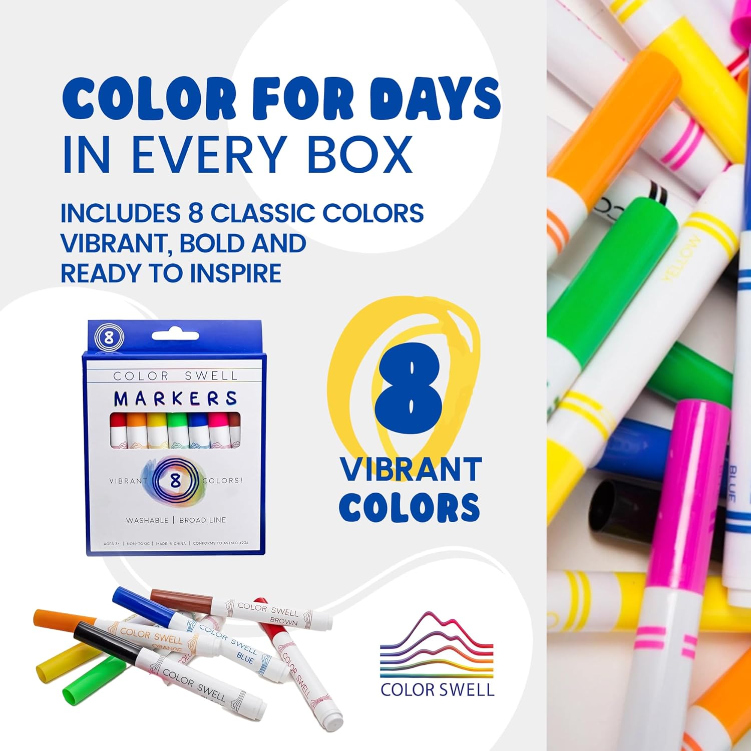 Color Swell Washable Markers 6 Boxes of 8 Vibrant Colors Perfect for Kids, Teachers, Adults, Parties, and Families…