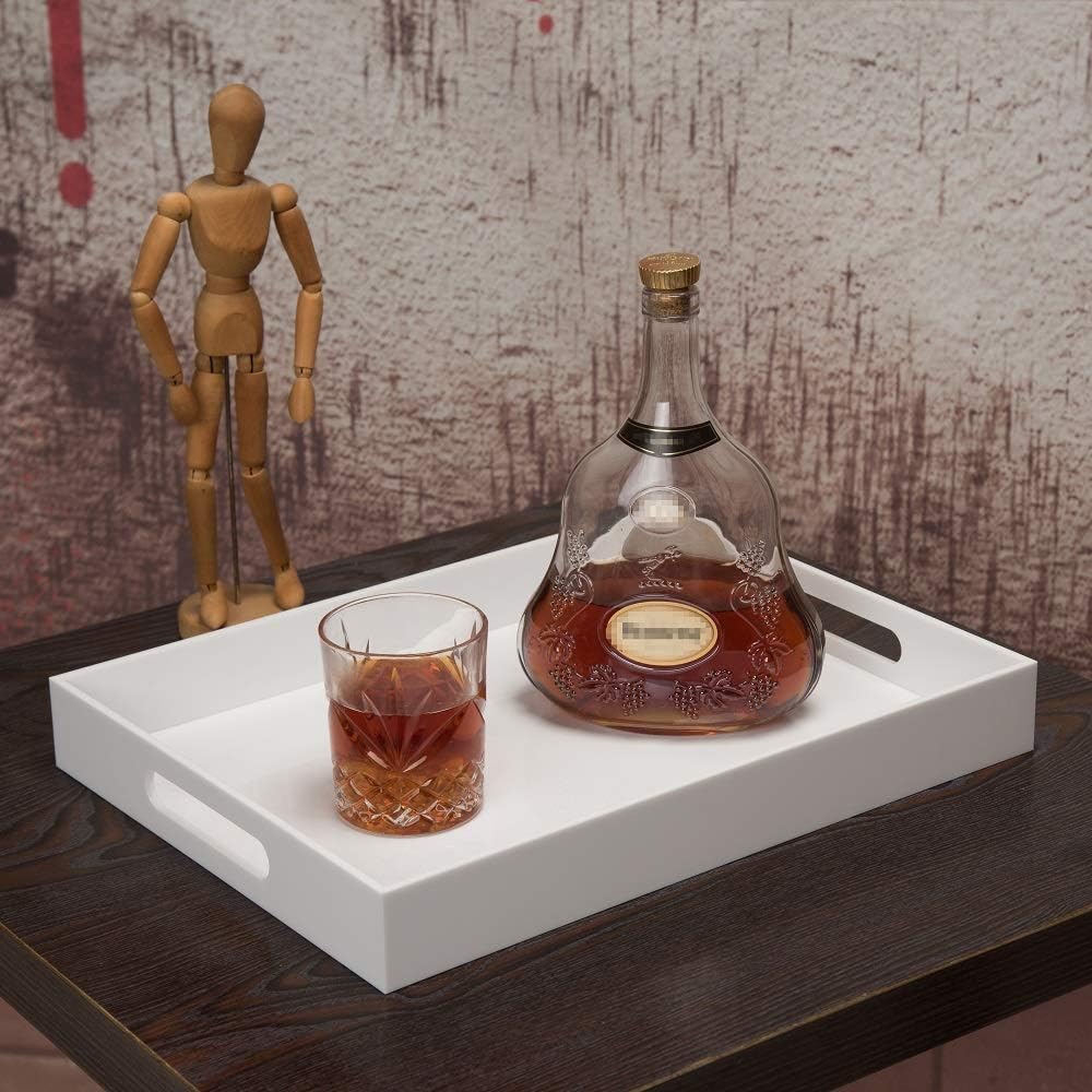 Glossy White Acrylic Serving Tray, 12x16Inch, Sturdy Kitchen Countertop Organizer, Decorative Vanity Table Tray, Ottoman Tray, 3/16 inch Thickness