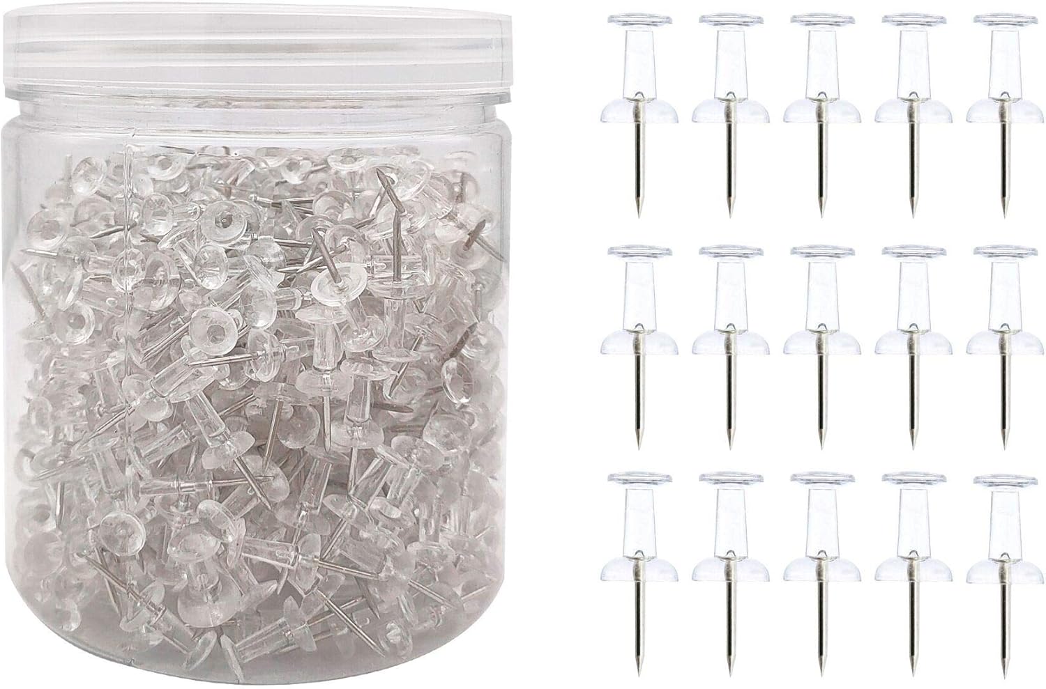 Clear Push Pins 600pcs Standard Thumb Tacks Steel Point Transparent Plastic Head Pins for Hanging Photo Posters Craft Marking Map Wall Cork Board